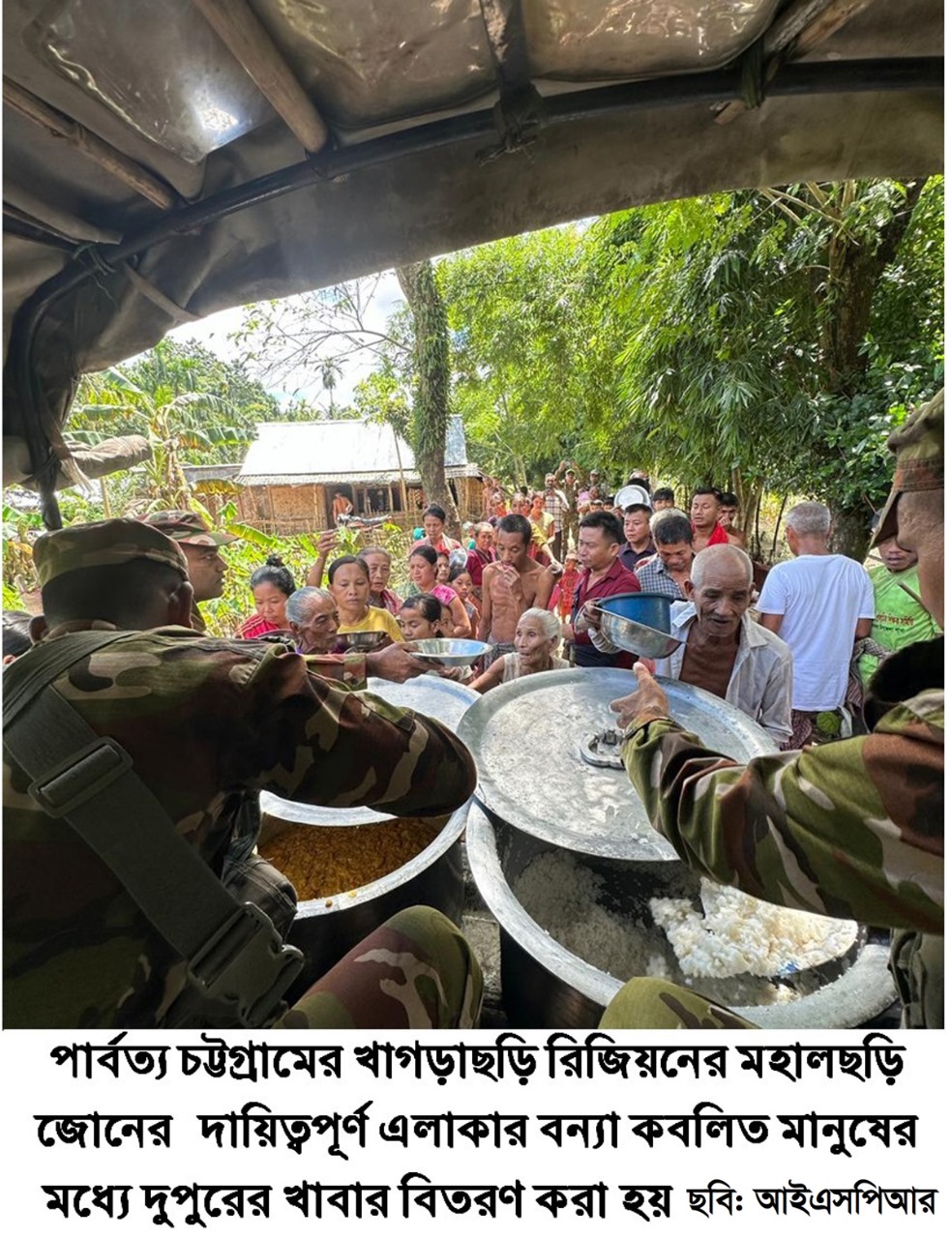 ঢাকা, ২৫ আগস্ট ২০২৪ (রবিবার)ঃ সশস্ত্র বাহিনী কর্তৃক বন্যার্তদের উদ্ধার, চিকিৎসা সেবা ও ত্রাণ সহায়তায় কার্যক্রমের অংশ হিসেবে গত ২৪ ঘন্টায় ( ২৫ আগস্ট ২০২৪) সর্বমোট ৭,৩৪৫ জন বন্যা দুর্গত ব্যক্তিকে হেলিকপ্টার ও বোট যোগে উদ্ধার করা হয়েছে। পাশাপাশি সর্বমোট ২৬,৮২৫ প্যাকেট খাদ্য সামগ্রী, ২,৭৯,০০০ কেজি শুকনা রশদ এবং ৩,৪৭০ জনকে রান্না করা খাবার বন্যার্তদের মাঝে বিতরণ করা হয়েছে।