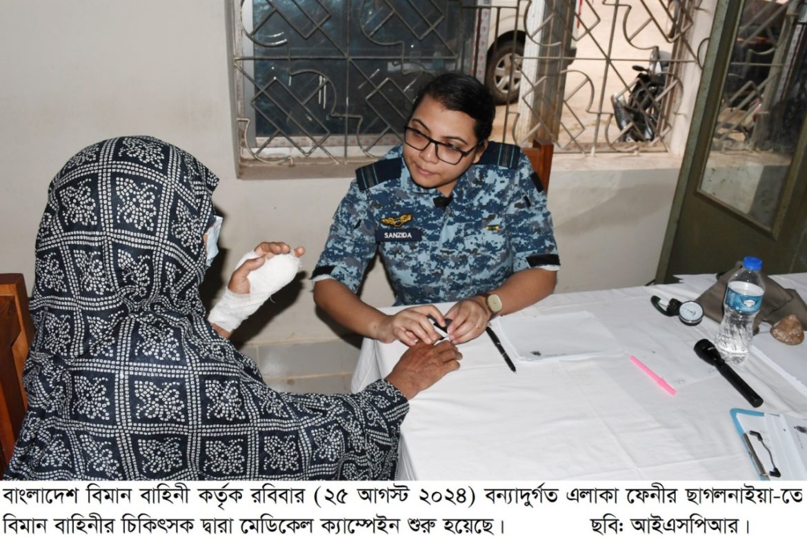 বন্যা দুর্গত এলাকা ফেনী হতে জরুরি সেবা প্রদানের লক্ষ্যে গর্ভবতী মহিলাসহ অন্যান্য মুমূর্ষু রোগীদেরকে বাংলাদেশ বিমান বাহিনীর হেলিকপ্টারের মাধ্যমে বিমান বাহিনী ঘাঁটি বাশারে আনা হয় এবং প্রাথমিক চিকিৎসা শেষে উন্নত চিৎিসার জন্য তাদেরকে বিভিন্ন হাসপাতালে প্রেরণ করা হয়।