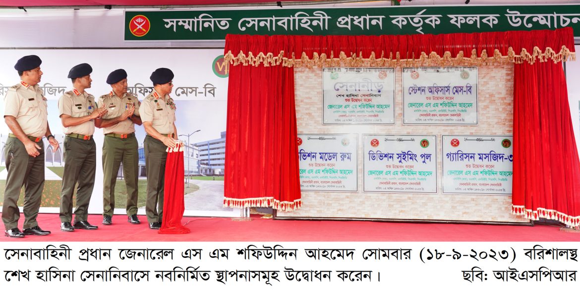 ঢাকা, ১৮ সেপ্টেম্বর ২০২৩ ঃ আজ সোমবার (১৮-৯-২০২৩) শেখ হাসিনা সেনানিবাসের অন্যান্য পদবির সেনাসদস্যদের জন্য ১১২টি ফ্ল্যাট বিশিষ্ট একটি ১৫তলা পারিবারিক বাসস্থান ‘সেনানীড়’ উদ্বোধন করেন সেনাবাহিনী প্রধান জেনারেল এস এম শফিউদ্দিন আহমেদ, এসবিপি (বার), ওএসপি, এনডিইউ, পিএসসি, পিএইচডি।