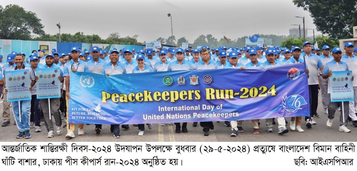 এর আগে, সকাল ০৬১৫ ঘটিকায় ঢাকার তেজগাঁওস্থ পুরাতন বিমান বন্দর মসজিদ এলাকায় এবং অন্যান্য বিভাগীয় শহরে “”শান্তিরক্ষী দৌড়-২০২৪” (Peacekeepers Rally/Run-2024)” এর মাধ্যমে দিবসের কর্মসূচি শুরু হয়। মাননীয় স্থানীয় সরকার, পল্লী উন্নয়ন ও সমবায় মন্ত্রী জনাব মোঃ তাজুল ইসলাম প্রধান অতিথি হিসেবে “”শান্তিরক্ষী দৌড়-২০২৪” (Peacekeepers Rally/Run-2024)” উদ্বোধন করেন। শান্তিরক্ষী দৌড়ে বাংলাদেশে নিযুক্ত জাতিসংঘের আবাসিক সমন্বয়কারী, সশস্ত্র বাহিনী বিভাগের প্রিন্সিপাল স্টাফ অফিসার, পররাষ্ট্র সচিব (সিনিয়র সচিব), সশস্ত্র বাহিনী ও পুলিশের শান্তিরক্ষীগণ, পররাষ্ট্র মন্ত্রণালয়, বাংলাদেশে জাতিসংঘের বিভিন্ন সংস্থা এবং আন্তঃবাহিনী সংস্থাসমূহের মনোনীত প্রতিনিধিগণ অংশগ্রহণ করেন।