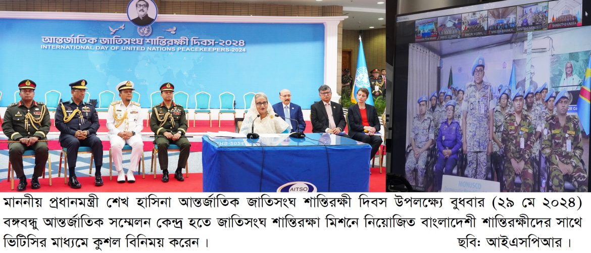 ঢাকা, ২৯ মে ২০২৪: বিশ্বের অন্যান্য দেশের ন্যায় বাংলাদেশেও ২৯ মে ২০২৪ (বুধবার) যথাযোগ্য মর্যাদায় আন্তর্জাতিক জাতিসংঘ শান্তিরক্ষী দিবস উদ্যাপিত হয়। জাতিসংঘ শান্তিরক্ষা কার্যক্রমে অংশগ্রহণকারী বিশে¡র সকল দেশের শান্তিরক্ষীদের অসামান্য অবদানকে এই দিনে গভীর শ্রদ্ধার সাথে স¥রণ করা হয়।