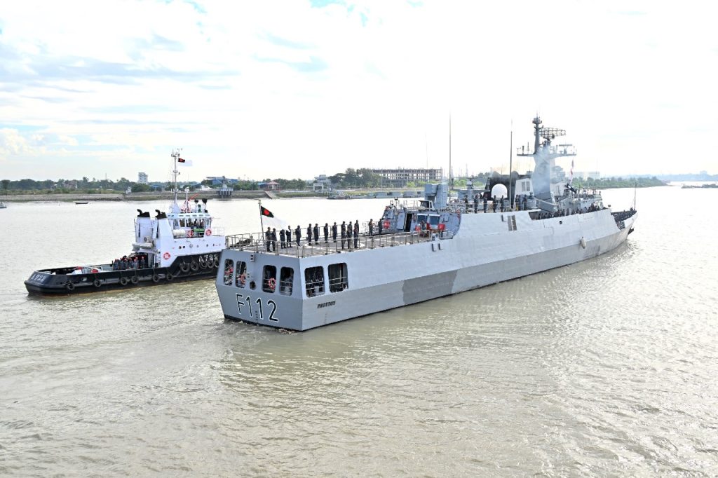 চট্টগ্রাম, ২০ নভেম্বর ২০২৫ঃ শ্রীলংকান নৌবাহিনীর ৭৫ বছর পূর্তি উদ্যাপন উপলক্ষ্যে আগামী ২৭ হতে ৩০ নভেম্বর ২০২৫ পর্যন্ত শ্রীলংকার কলম্বোতে অনুষ্ঠিতব্য ‘আন্তর্জাতিক ফ্লিট রিভিউ’তে অংশগ্রহণের উদ্দেশ্যে আজ বৃহস্পতিবার (২০-১১-২০২৫) বাংলাদেশ নৌবাহিনী জাহাজ ‘প্রত্যয়’ চট্টগ্রাম ত্যাগ করেছে। চট্টগ্রাম ত্যাগকালে নৌবাহিনীর ঐতিহ্যবাহী রীতি অনুযায়ী সুসজ্জিত বাদকদল কর্তৃক বাদ্য যন্ত্র পরিবেশনের মাধ্যমে আনুষ্ঠানিকভাবে জাহাজটিকে বিদায় জানানো হয়। কমান্ডার চট্টগ্রাম নৌ অঞ্চল রিয়ার এডমিরাল মোঃ মঈনুল হাসান প্রধান অতিথি হিসেবে উপস্থিত থেকে জাহাজে গমনকারী কর্মকর্তা ও নাবিকদের উদ্দেশ্যে দিক নির্দেশনামূলক বক্তব্য প্রদান করেন। এ সময় স্থানীয় পদস্থ নৌ কর্মকর্তাবৃন্দ এবং জাহাজে গমনকারী কর্মকর্তা ও নাবিকদের পরিবারবর্গ উপস্থিত ছিলেন।