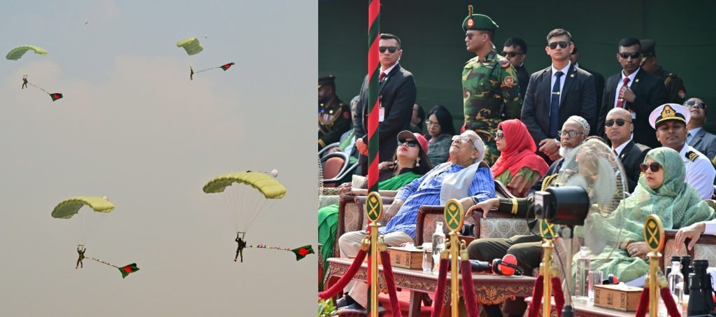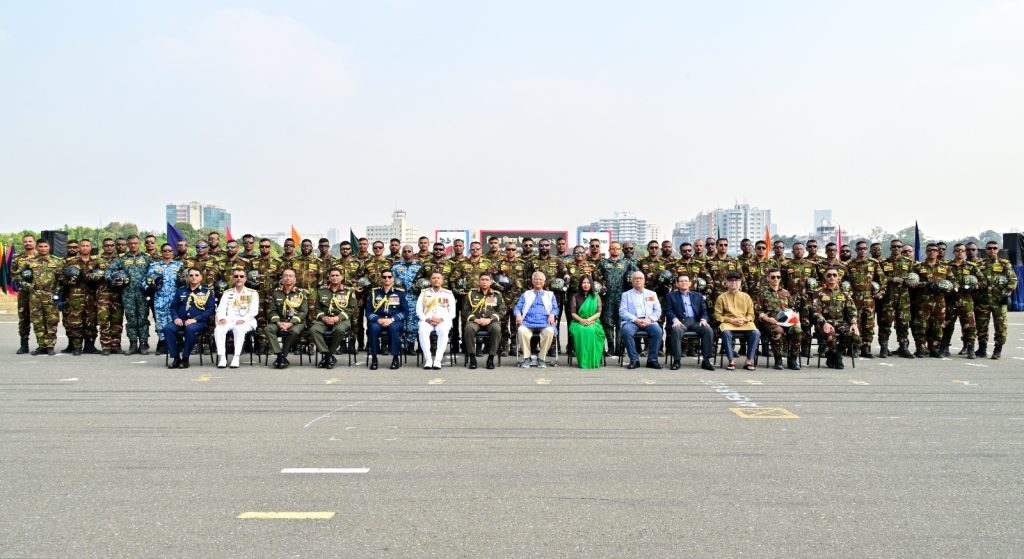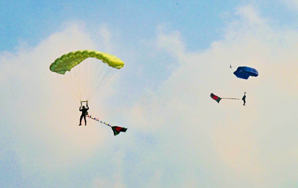 ঢাকা, ১৩ জানুয়ারি ২০২৬ (মঙ্গলবার)ঃ গত ১৬ ডিসেম্বর ২০২৫ তারিখ ‘মহান বিজয় দিবস-২০২৫’ উদযাপন উপলক্ষে সেনা, নৌ ও বিমান বাহিনীর সমন্বয়ে জাতীয় প্যারেড স্কয়ার, তেজগাঁও এ প্যারা জাম্পের আয়োজন করা হয়। বিজয়ের ৫৪ তম বছর পূর্তিতে বাংলাদেশ বিনিয়োগ উন্নয়ন কর্তৃপক্ষের চেয়ারম্যান চৌধুরী আশিক মাহমুদ বিন হারুন এবং সশস্ত্র বাহিনীর ৫৩ জনসহ সর্বমোট ৫৪ জন প্যারাট্রপার বাংলাদেশের জাতীয় পতাকাসহ ফ্রি ফল জাম্পের মাধ্যমে আকাশ হতে ভূমিতে অবতরণ করেন যা, এ যাবৎকালের মধ্যে সর্বোচ্চ এবং বিজয়ের মাসে বাংলাদেশ পেল এক অনন্য আন্তর্জাতিক সম্মান। গিনেস ওয়ার্ল্ড রেকর্ডস কর্তৃপক্ষ আনুষ্ঠানিকভাবে নিশ্চিত করেছে গত ১৬ ডিসেম্বর ২০২৫ তারিখে মহান বিজয় দিবসে জাতীয় প্যারেড স্কয়ার, তেজগাঁও এ অনুষ্ঠিত ৫৪ জন প্যারাট্রুপার ৫৪টি বাংলাদেশের জাতীয় পতাকাসহ ফ্রি ফল জাম্পের মাধ্যমে বিশ্বরেকর্ড গড়েছে। সশস্ত্র বাহিনী বিভাগের তত্ত্বাবধানে পুরো উদ্যোগটির পরিকল্পনা ও বাস্তবায়ন করা হয়।