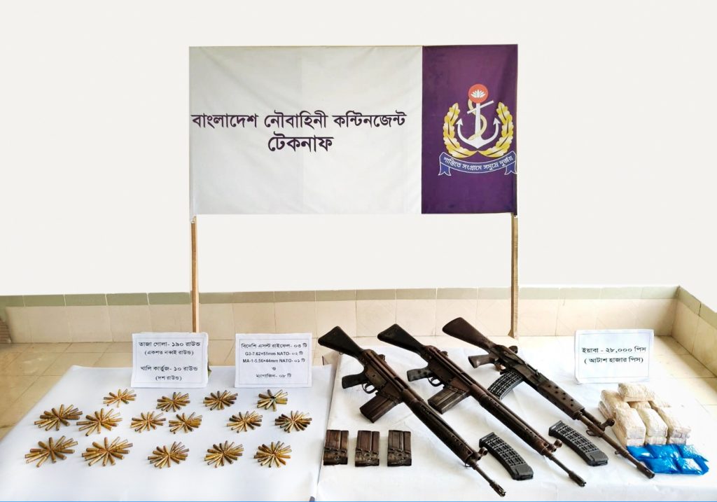 টেকনাফসহ দায়িত্বপ্রাপ্ত এলাকাসমূহে বাংলাদেশ নৌবাহিনীর মাদকবিরোধী অভিযান, সন্ত্রাস ও অপরাধ দমন এবং অস্ত্র উদ্ধার অভিযান অব্যাহত রয়েছে। সার্বিক নজরদারিবৃদ্ধিসহ জাতীয় নিরাপত্তা নিশ্চিতে নৌবাহিনী দৃঢ়তার সাথে কাজ করে যাচ্ছে।