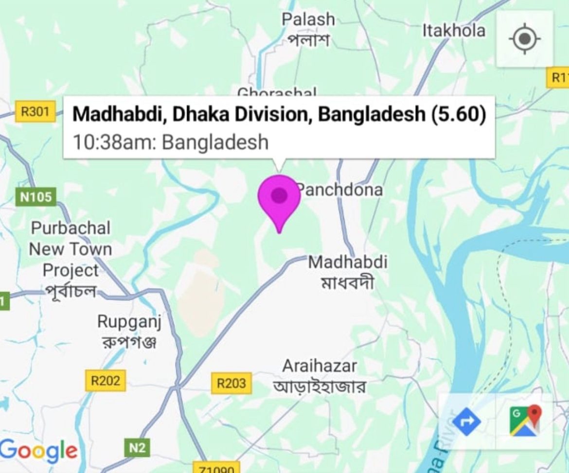 ঢাকা, ২১ নভেম্বর ২০২৫: রাজধানী ঢাকাসহ দেশের বিভিন্ন এলাকায় আজ শুক্রবার (২১ নভেম্বর ২০২৫) ভূমিকম্প অনুভূত হয়েছে। বাংলাদেশ আবহাওয়া অধিদপ্তরের তথ্য অনুযায়ী সকাল ১০ঃ৩৮ মিনিট ২৬ সেকেন্ডে ভূমিকম্প অনুভূত হয়েছে। রিখটার স্কেলে এর মাত্রা ছিল ৫.৭। এর উৎপত্তিস্থল ছিল নরসিংদীর মাধবদী এবং ঢাকার আগারগাঁও এর আবহাওয়া অধিদপ্তরের সিসমিক সেন্টার হতে ১৩ কিলোমিটার পূর্বে। এর লোকেশন ছিল Lat.: 23.77°N, Long.: 90.51°E (Madhabdi, Dhaka).