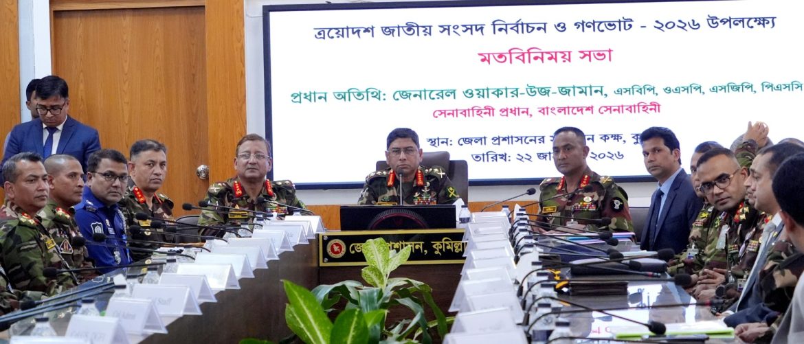 ঢাকা, ২২ জানুয়ারি ২০২৬: সেনাবাহিনী প্রধান জেনারেল ওয়াকার-উজ-জামান, এসবিপি, ওএসপি, এসজিপি, পিএসসি আজ বৃহস্পতিবার (২২-০১-২০২৬) আসন্ন ত্রয়োদশ জাতীয় সংসদ নির্বাচন ও গণভোট-২০২৬ উপলক্ষ্যে সার্বিক আইনশৃঙ্খলা পরিস্থিতি মূল্যায়ন এবং ‘ইন এইড টু দ্য সিভিল পাওয়ার’ এর আওতায় মোতায়েনরত সেনাসদস্যদের পরিদর্শনের লক্ষ্যে চট্টগ্রাম ও কুমিল্লা এরিয়া পরিদর্শন করেন। পরিদর্শনকালে, সেনাবাহিনী প্রধান চট্টগ্রাম ও কুমিল্লায় মোতায়েনকৃত সেনাসদস্যদের কার্যক্রম সরেজমিনে পর্যবেক্ষণ ও প্রয়োজনীয় দিকনির্দেশনা প্রদান এবং অসামরিক প্রশাসনের সাথে মতবিনিময় করেন।