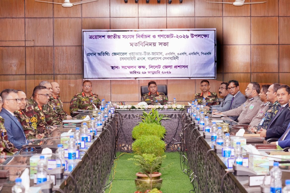 সফরকালে, সেনাবাহিনী প্রধান কক্সবাজারে বাংলাদেশ ইনস্টিটিউট অব এডমিনিস্ট্রেশন এন্ড ম্যানেজমেন্ট (বিয়াম) ফাউন্ডেশন আঞ্চলিক কেন্দ্র এর সম্মেলন কক্ষে আয়োজিত এক সভায় ঊর্ধ্বতন পর্যায়ের সামরিক, বিভাগীয় ও জেলা প্রশাসন এবং বিভিন্ন আইনশৃঙ্খলা রক্ষাকারী বাহিনীর কর্মকর্তাদের সাথে মতবিনিময় করেন এবং পরবর্তীতে, সিলেট জেলা প্রশাসনের সম্মেলন কক্ষে অনুরূপ মতবিনিময় সভা অনুষ্ঠিত হয়। মতবিনিময়কালে, আসন্ন জাতীয় সংসদ নির্বাচনকে শান্তিপূর্ণ, নিরপেক্ষ ও সুষ্ঠুভাবে সম্পন্ন করার লক্ষ্যে আন্তঃপ্রাতিষ্ঠানিক সমন্বয় এবং সামগ্রিক নিরাপত্তা ব্যবস্থাপনা নিয়ে আলোচনা হয়। সেনাপ্রধান পেশাদারিত্ব, নিরপেক্ষতা, শৃঙ্খলা, ধৈর্য ও নাগরিকবান্ধব আচরণের মাধ্যমে দায়িত্ব পালনের উপর বিশেষ গুরুত্বারোপ করেন।