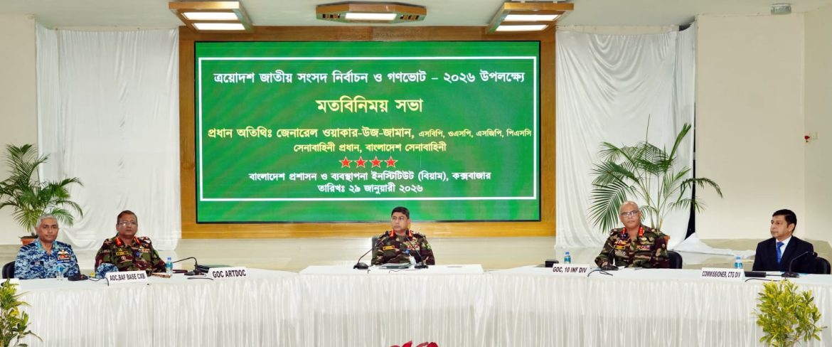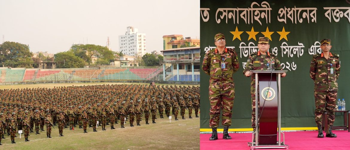 ঢাকা, ২৯ জানুয়ারি ২০২৬ (বৃহস্পতিবার): আজ সেনাবাহিনী প্রধান জেনারেল ওয়াকার-উজ-জামান, এসবিপি, ওএসপি, এসজিপি, পিএসসি আসন্ন ত্রয়োদশ জাতীয় সংসদ নির্বাচন ও গণভোট-২০২৬ উপলক্ষ্যে সার্বিক আইনশৃঙ্খলা পরিস্থিতি মূল্যায়ন এবং ‘ইন এইড টু দ্য সিভিল পাওয়ার’ এর আওতায় মোতায়েনরত সেনাসদস্যদের পরিদর্শনের লক্ষ্যে কক্সবাজার ও সিলেট এরিয়া পরিদর্শন করেন। পরিদর্শনকালে, সেনাবাহিনী প্রধান মোতায়েনকৃত সেনাসদস্যদের কার্যক্রম সরেজমিনে পর্যবেক্ষণ ও প্রয়োজনীয় দিকনির্দেশনা প্রদান এবং অসামরিক প্রশাসনের সাথে মতবিনিময় করেন।