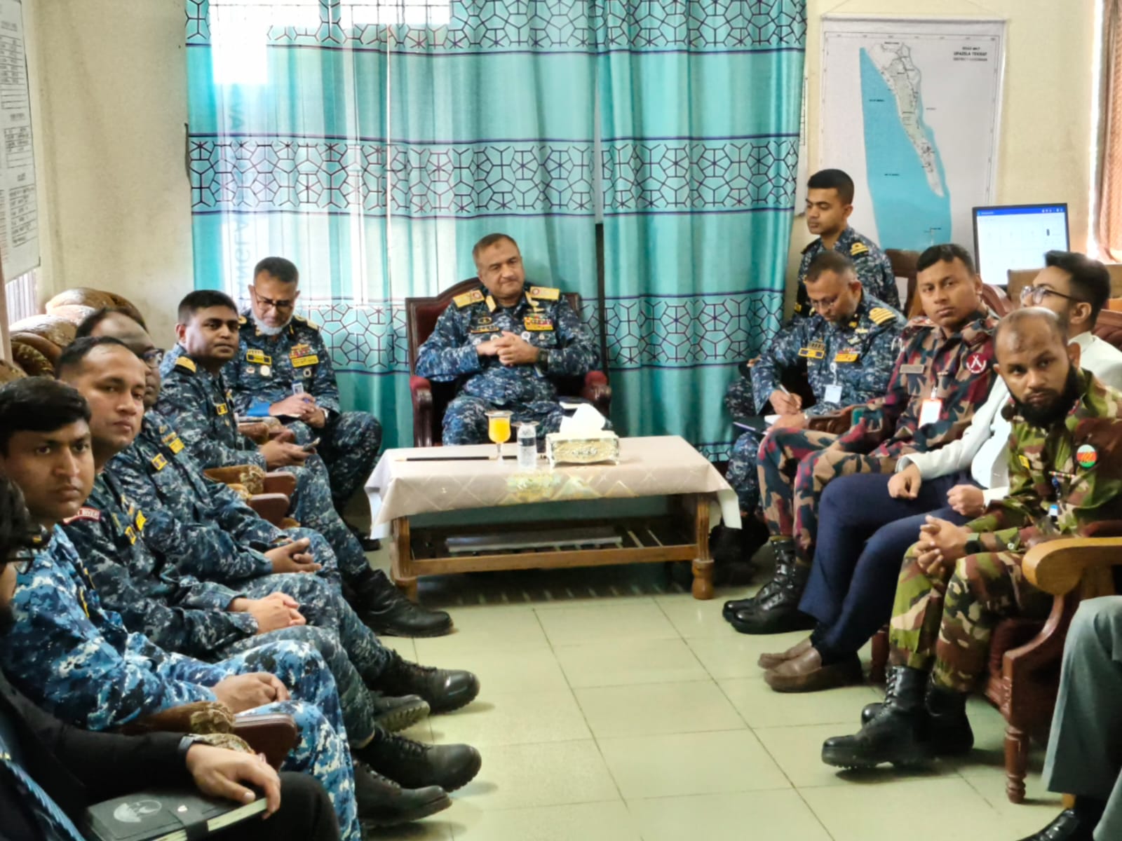 টেকনাফ, সেন্টমার্টিন ও মহেশখালী কন্টিনজেন্ট পরিদর্শনকালে তিনি দায়িত্বরত ব্যক্তিদের সুষ্ঠু নির্বাচন আয়োজনে বিশেষ দিক নির্দেশনা প্রদান করেন। স্বাভাবিক ও স্থিতিশীল আইনশৃঙ্খলা পরিস্থিতি বজায় রেখে আসন্ন নির্বাচন অবাধ, সুষ্ঠু ও নিরপেক্ষভাবে আয়োজনে সকলকে একসাথে কাজ করার আহবান জানান। সাধারণ মানুষ যেন নির্ভয়ে ও উৎসবমুখর পরিবেশে ভোটাধিকার প্রয়োগ করতে পারে সে লক্ষ্যে বাংলাদেশ নৌবাহিনী ও অন্যান্য আইন শৃঙ্খলা রক্ষাকারী বাহিনী নিয়োজিত রয়েছে।