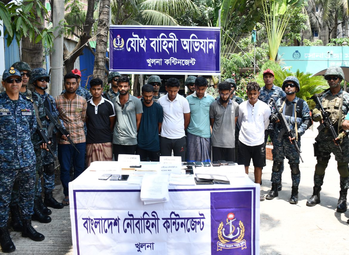 খুলনা, ২০ মে ২০২৫ঃ গত ১৫ এপ্রিল ২০২৫ হতে গ্রীষ্মকালীন বি-২০২৫ ব্যাচে বাংলাদেশ নৌবাহিনীতে নাবিক ও এমওডিসি(নৌ) ভর্তির কার্যক্রম চলমান রয়েছে। ভর্তির কার্যক্রম চলাকালে গোপন সংবাদের ভিত্তিতে গতকাল সোমবার (১৯-০৫-২০২৫) খুলনা মহানগরীর সোনাডাঙ্গা থানাধীন হোটেল সুইট প্যালেস অভিযান চালিয়ে নাবিক ভর্তি সংক্রান্ত জালিয়াতি চক্রের ৯ জন সদস্যকে আটক করে নৌবাহিনী কন্টিনজেন্ট।