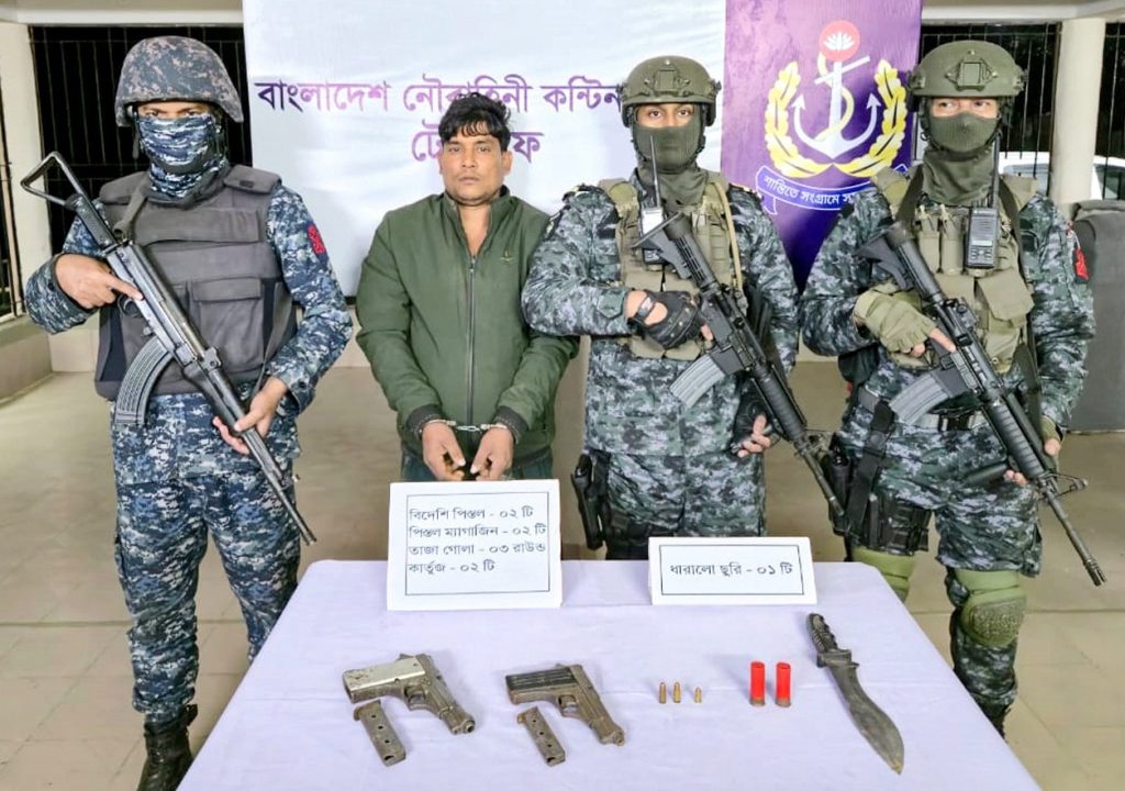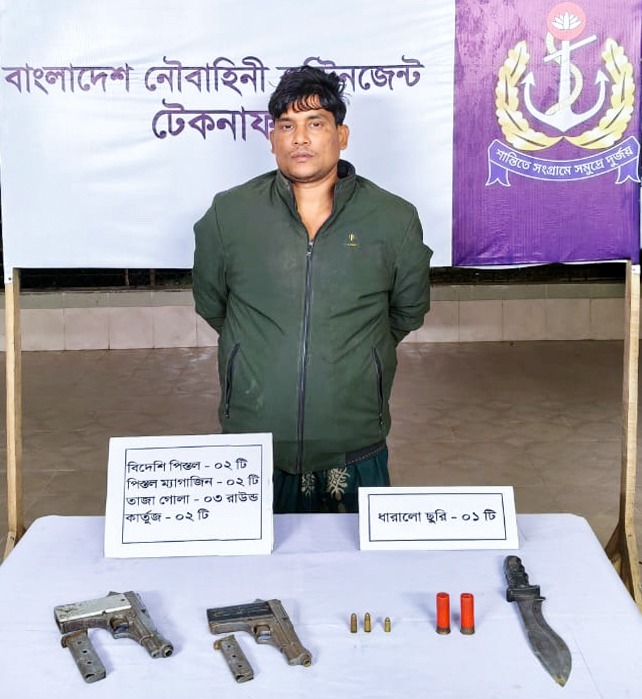 নৌবাহিনীর অভিযানে টেকনাফে আগ্নেয়াস্ত্রসহ ওয়ারেন্টভুক্ত আসামি আটক