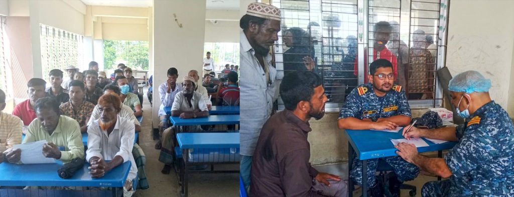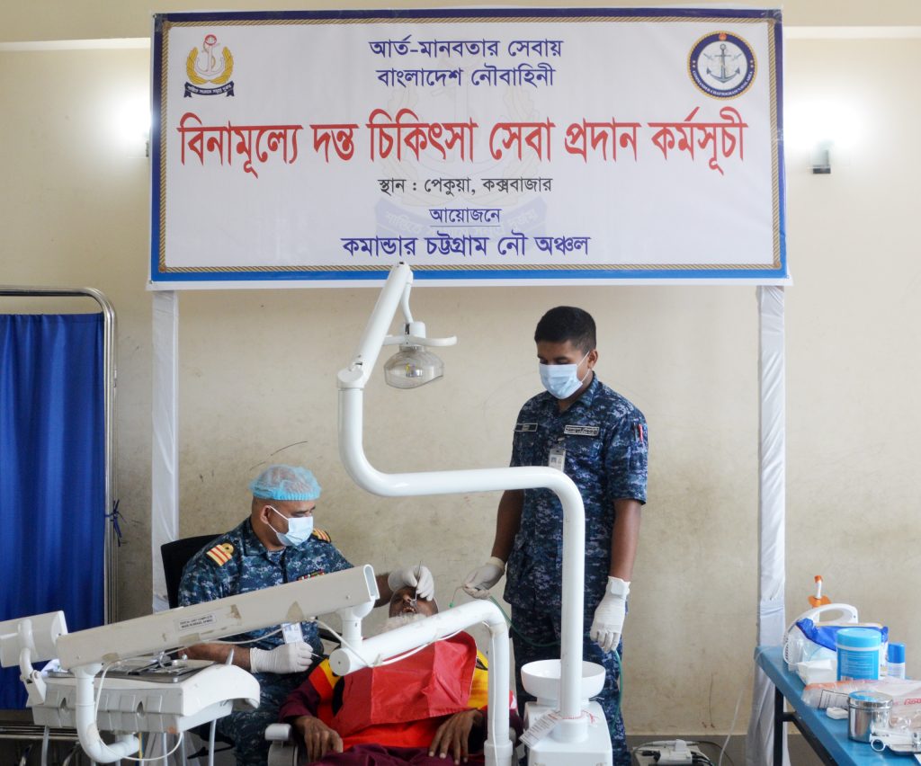 ডেন্টাল ও মেডিকেল ক্যাম্পেইনে নৌবাহিনীর বিশেষজ্ঞ ডেন্টাল সার্জন দ্বারা স্থানীয় দুস্থ ও সাধারণ মানুষকে বিনামূল্যে দাঁতের চিকিৎসা সেবা প্রদান করা হচ্ছে। ক্যাম্পেইনে চিকিৎসা নিতে আসা মানুষজনের দাঁতের বিভিন্ন রোগ নির্ণয় ও চিকিৎসা এবং মুখ ও দাঁতের সঠিক যত্ন সম্পর্কে সচেতনতামূলক পরামর্শ দেওয়া হচ্ছে। পাশাপাশি অন্যান্য রোগে আক্রাঞ্চ রোগীদের জন্যও নৌবাহিনীর অন্য একটি মেডিকেল টিন বিনামূল্যে চিকিৎসা সেবা প্রদান করছে। চিকিৎসা সেবা গ্রহণকারীদের প্রয়োজনীয় ঔষধ সামগ্রী বিনামূল্যে প্রদান করা হচ্ছে। স্থানীয় ও পার্শ্ববর্তী এলাকার বিপুল সংখ্যক মানুষজন দাঁত ও অন্যান্য রোগের চিকিৎসার জন্য ক্যাম্পেইনে আসছে। সাধারণ রোগীদের পাশাপাশি বিভিন্ন জটিল রোগে আক্রাম্ভ রোগীদেরও চিকিৎসা সেবা দেওয়া হচ্ছে। এ ক্যাম্পেইনের মাধ্যমে কয়েক হাজার মানুষকে ডেন্টাল ও মেডিসিন বিষয়ে চিকিৎসা প্রদান করা হবে। আরিকতা ও পেশাদারিত্বের সাথে চিকিৎসা সেবা প্রদান করায় সেবা গ্রহীতারা ব্যাপক সন্তুষ্টি ও স্বড়ি প্রকাশ করেছে।