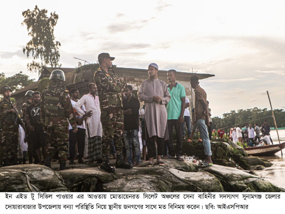 ঢাকা, ২৬ আগস্ট ২০২৪ (সোমবার):- সশস্ত্র বাহিনী কর্তৃক বন্যার্তদের উদ্ধার, চিকিৎসা সেবা ও ত্রাণ সহায়তায় কার্যক্রমের অংশ হিসেবে গত ২৪ ঘন্টায় (২৬ আগস্ট ২০২৪) সর্বমোট ৩,৫৬৭ জন বন্যা দুর্গত ব্যক্তিকে হেলিকপ্টার ও বোট যোগে উদ্ধার করা হয়েছে। পাশাপাশি সর্বমোট ২১,৫৫৯ প্যাকেট খাদ্য সামগ্রী, ১২,৯৯৩ কেজি শুকনা রশদ, ৪,৬২০ জনকে রান্না করা খাবার এবং ৫,৬৪০ লিটার পানি বন্যার্তদের মাঝে বিতরণ করা হয়েছে। এছাড়াও বিশেষজ্ঞ ডাক্তারের সমন্বয়ে ৭টি অস্থায়ী মেডিকেল টিমের মাধ্যমে সর্বমোট ২,২১৭ জনকে চিকিৎসা সহায়তা প্রদান করা হয়েছে।