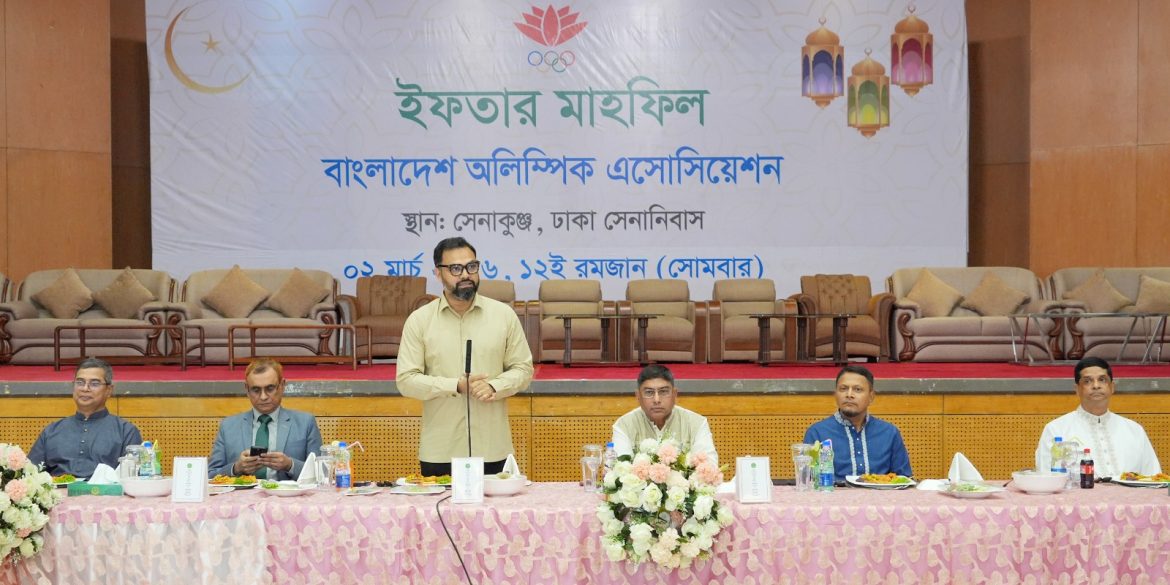 ঢাকা, ০২ মার্চ ২০২৬ (সোমবার): পবিত্র মাহে রমজান উপলক্ষ্যে বাংলাদেশ অলিম্পিক এসোসিয়েশন (বিওএ) এর উদ্যোগে আজ (০২ মার্চ ২০২৬) সন্ধ্যায় ঢাকা সেনানিবাসস্থ সেনাকুঞ্জে ইফতার মাহফিল-২০২৬ অনুষ্ঠিত হয়।