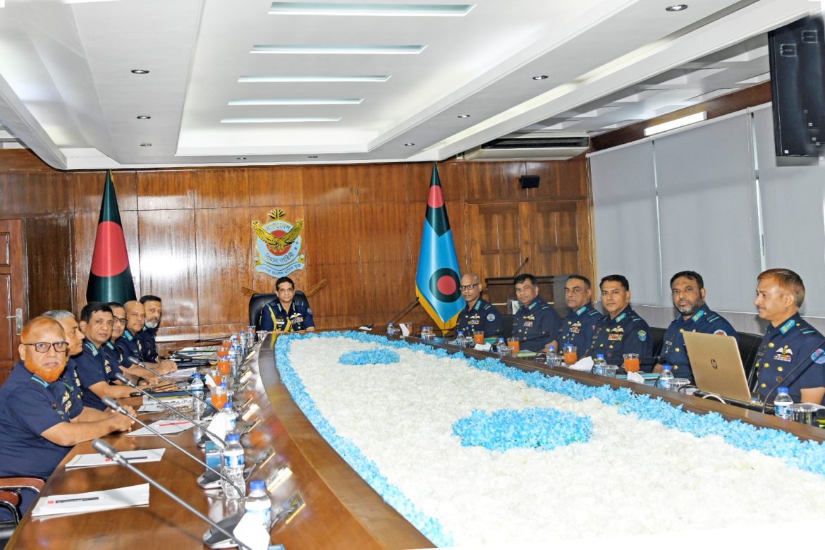 ঢাকা, ০৮ জুলাই ২০২৫ ঃ বাংলাদেশ বিমান বাহিনীর এয়ার মার্শাল সম্মেলন মঙ্গলবার (০৮-৭-২০২৫) ঢাকা সেনানিবাসস্থ বিমান বাহিনী সদর দপ্তর- এ অনুষ্ঠিত হয়। অনুষ্ঠানে প্রধান অতিথি হিসেবে উপস্থিত ছিলেন বাংলাদেশ বিমান বাহিনী প্রধান এয়ার চীফ মার্শাল হাসান মাহমুদ খাঁন, বিবিপি, ওএসপি, জিইউপি, এনএসডব্লিউসি, পিএসসি (Chief of Air Staff Air Chief Marshal Hasan Mahmood Khan, BBP, OSP, GUP, nswc, psc) ।