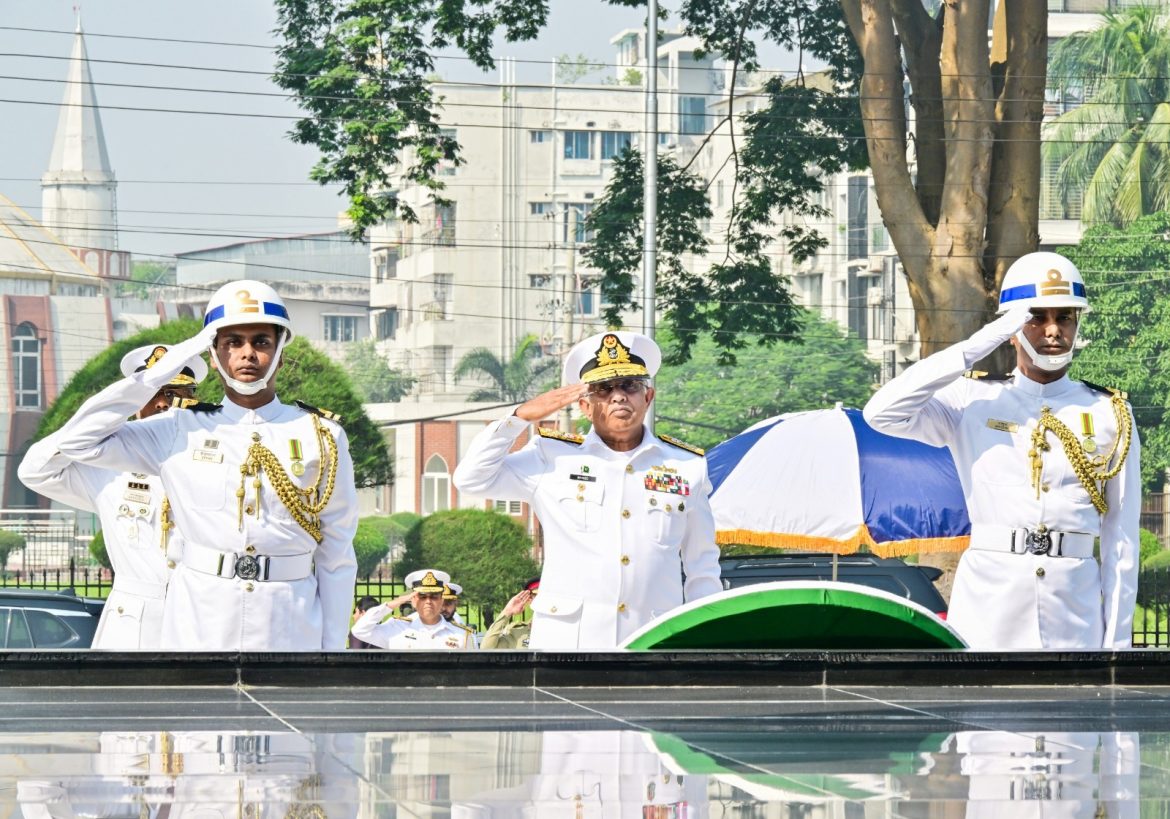 ঢাকা, ০৯ নভেম্বর ২০২৫ঃ পাকিস্তান নৌবাহিনী প্রধান এডমিরাল নাভিদ আশরাফ (Admiral Naveed Ashraf) তিন দিনের সরকারি সফরে বাংলাদেশে এসেছেন। সফরের অংশ হিসেবে আজ রবিবার (০৯-১১-২০২৫) বনানীস্থ নৌবাহিনী সদর দপ্তরে বাংলাদেশ নৌবাহিনী প্রধান এডমিরাল এম নাজমুল হাসান এর সাথে সৌজন্য সাক্ষাৎ করেন। এর আগে তিনি নৌবাহিনী সদর দপ্তরে এসে পৌঁছালে নৌবাহিনী প্রধান তাঁকে স্বাগত জানান। এ সময় বাংলাদেশে নৌবাহিনীর একটি সুসজ্জিত দল তাঁকে গার্ড অব অনার প্রদান করে। তিনি গার্ড পরিদর্শন এবং অভিবাদন গ্রহণ করেন।