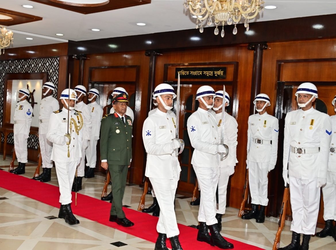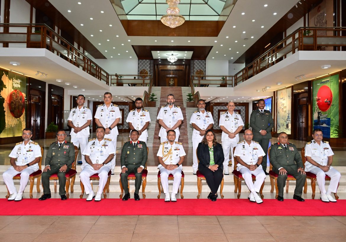 ঢাকা ১৪ সেপ্টেম্বর ২০২৫ঃ বাংলাদেশে সফররত মালদ্বীপ ন্যাশনাল ডিফেন্স ফোর্সের প্রধান মেজর জেনারেল ইব্রাহিম হিলমি (Major General Ibrahim Hilmy) আজ রবিবার (১৪-০৯-২০২৫) নৌবাহিনী সদর দপ্তরে নৌবাহিনী প্রধান এডমিরাল এম নাজমুল হাসান এর সাথে সৌজন্য সাক্ষাৎ করেন। এর আগে তিনি নৌবাহিনী সদর দপ্তরে এসে পৌঁছালে নৌবাহিনী প্রধান তাঁকে স্বাগত জানান। এ সময় নৌবাহিনীর একটি সুসজ্জিত দল তাঁকে গার্ড অব অনার প্রদান করেন। তিনি গার্ড পরিদর্শন এবং অভিবাদন গ্রহণ করেন।