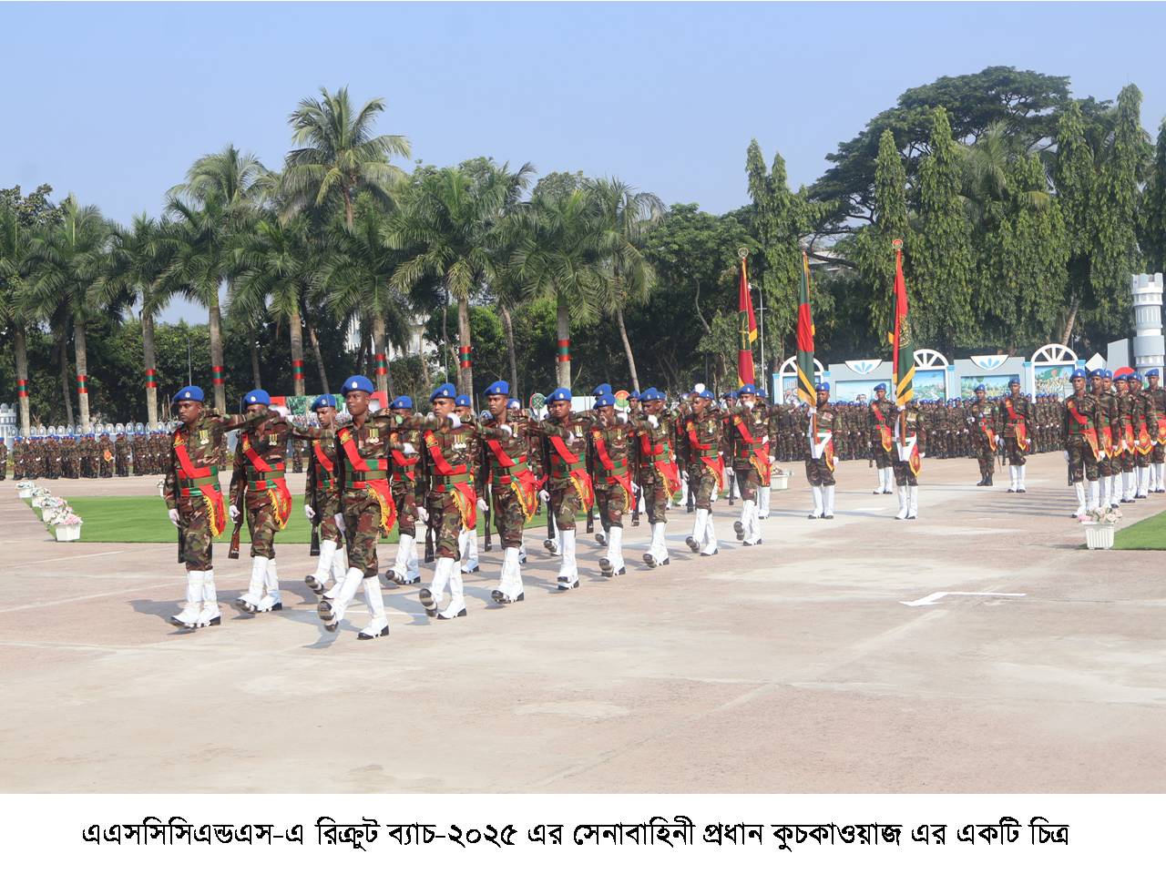 ঢাকা, ১৫ অক্টোবর ২০২৫ (বুধবার): বাংলাদেশ সেনাবাহিনীর আর্মি সার্ভিস কোরের রিক্রুট ব্যাচ-২০২৫ এর সেনাবাহিনী প্রধান কুচকাওয়াজ অনুষ্ঠান আজ (১৫ অক্টোবর ২০২৫) খুলনার জাহানাবাদ সেনানিবাসস্থ আর্মি সার্ভিস কোর সেন্টার এন্ড স্কুল (এএসসিসিএন্ডএস) এ অনুষ্ঠিত হয়। অনুষ্ঠানে প্রধান অতিথি হিসেবে মেজর জেনারেল জে এম ইমদাদুল ইসলাম, এনডিসি, এএফডব্লিউসি, পিএসসি, এমফিল, জেনারেল অফিসার কমান্ডিং (জিওসি) ৫৫ পদাতিক ডিভিশন ও এরিয়া কমান্ডার, যশোর এরিয়া উপস্থিত থেকে কুচকাওয়াজ পরিদর্শন ও অভিবাদন গ্রহণ করেন।