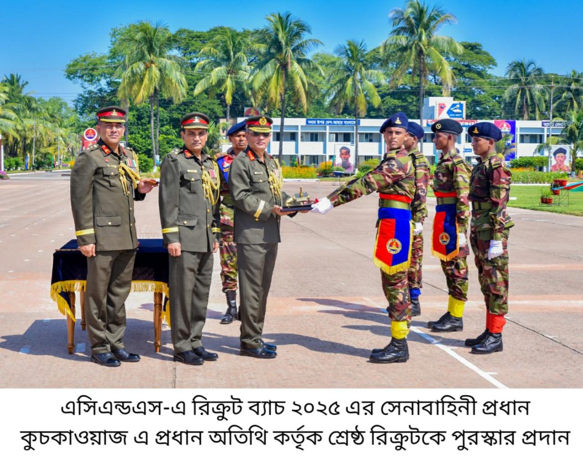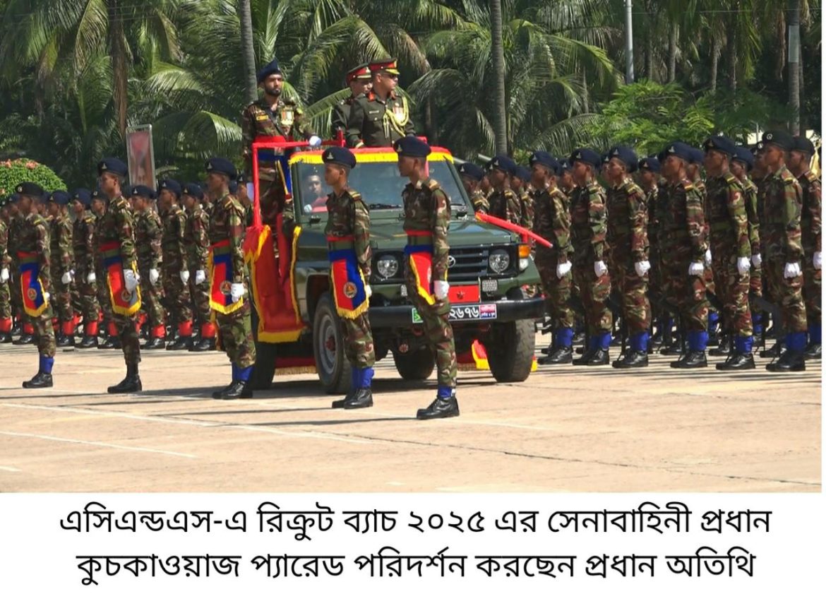 এছাড়া, একই দিন সেনাবাহিনীর আর্টিলারি রেজিমেন্ট ও আর্মি এয়ার ডিফেন্স কোরের রিক্রুট ব্যাচ-২০২৫ এর সেনাবাহিনী প্রধান কুচকাওয়াজ অনুষ্ঠান চট্টগ্রামের হালিশহরস্থ আর্টিলারি সেন্টার এন্ড স্কুল (এসিএন্ডএস)-এ অনুষ্ঠিত হয়। অনুষ্ঠানে প্রধান অতিথি হিসেবে যথাক্রমে সেনাবাহিনীর মেজর জেনারেল মীর মুশফিকুর রহমান, বিএসপি, এসইউপি, এনডিসি, পিএসসি, জেনারেল অফিসার কমান্ডিং (জিওসি) ২৪ পদাতিক ডিভিশন ও এরিয়া কমান্ডার চট্টগ্রাম এরিয়া উপস্থিত থেকে কুচকাওয়াজ পরিদর্শন ও অভিবাদন গ্রহণ করেন।