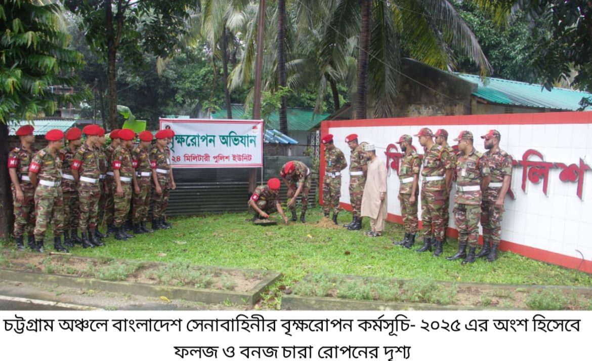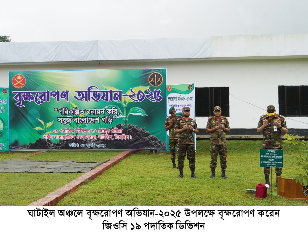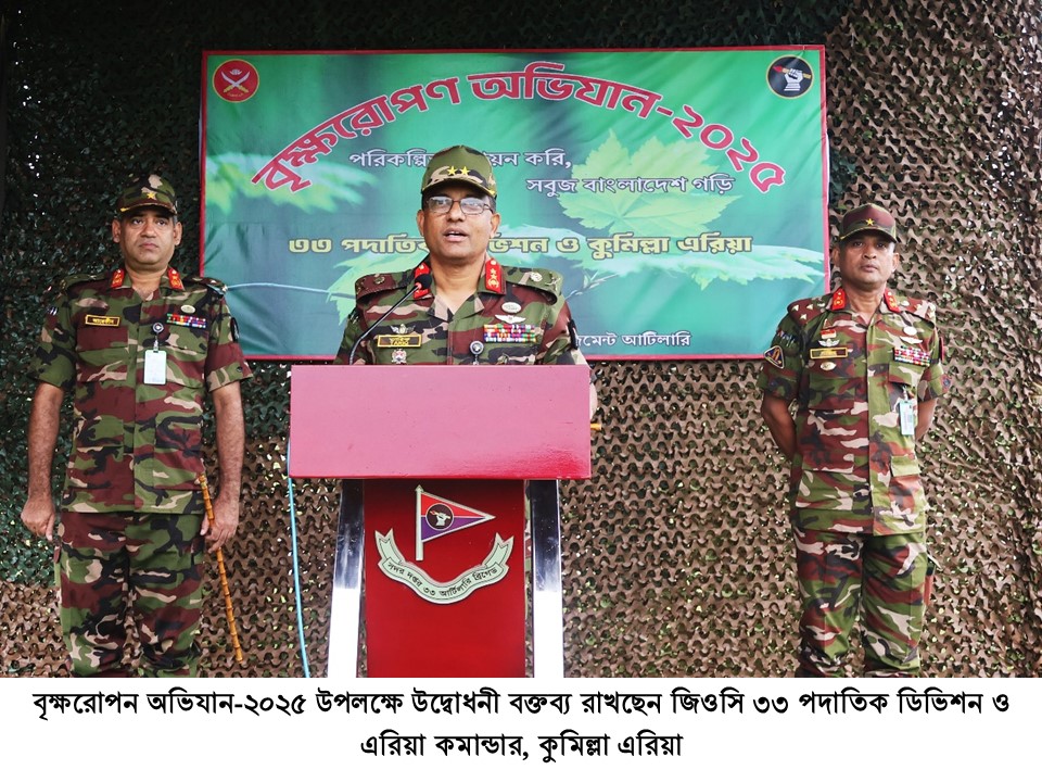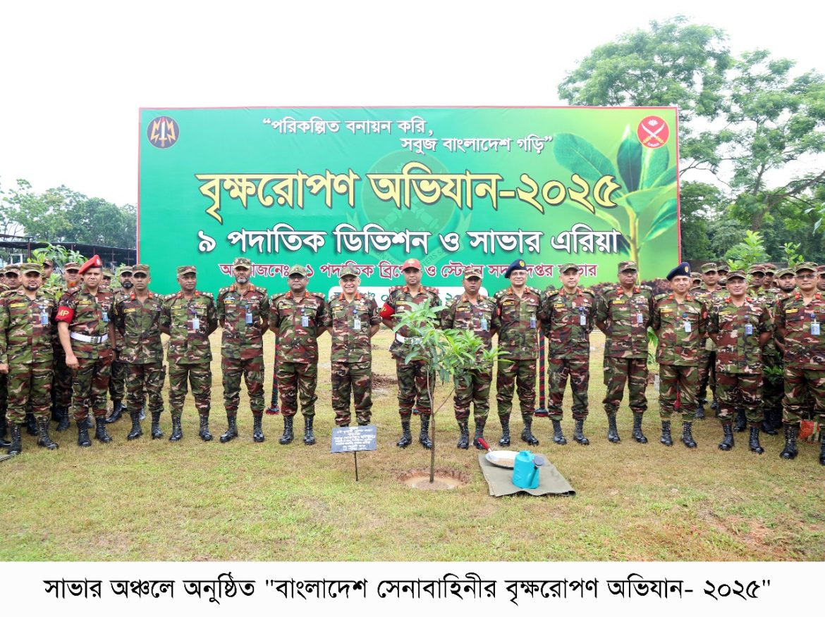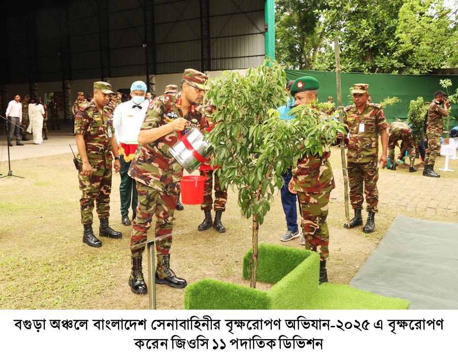 ‘পরিকল্পিত বনায়ন করি, সবুজ বাংলাদেশ গড়ি’ এই প্রতিপাদ্যে বাংলাদেশ সেনাবাহিনীর বৃক্ষরোপণ অভিযান-২০২৫ এ সকল সেনানিবাসের প্রশিক্ষণ ও ফায়ারিং রেঞ্জ এলাকা, ডিওএইচএস এবং জলসিঁড়ি আবাসন প্রকল্পে ফলজ, বনজ ও ঔষধি প্রজাতির বৃক্ষসহ সৌন্দর্য্যবর্ধক গাছের চারা রোপণের মাধ্যমে এই বৃক্ষরোপন কর্মসূচী একযোগে বাস্তবায়ন করা হবে, যা সেপ্টেম্বর ২০২৫ পর্যন্ত চলমান থাকবে।