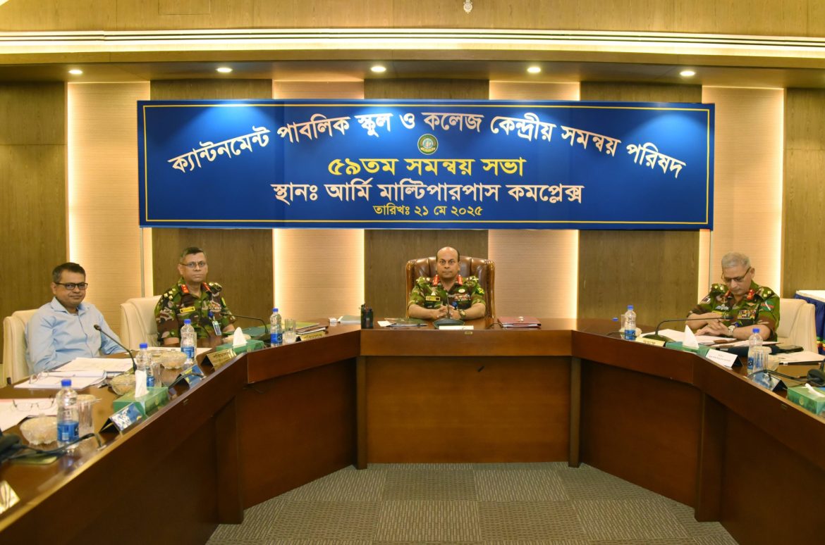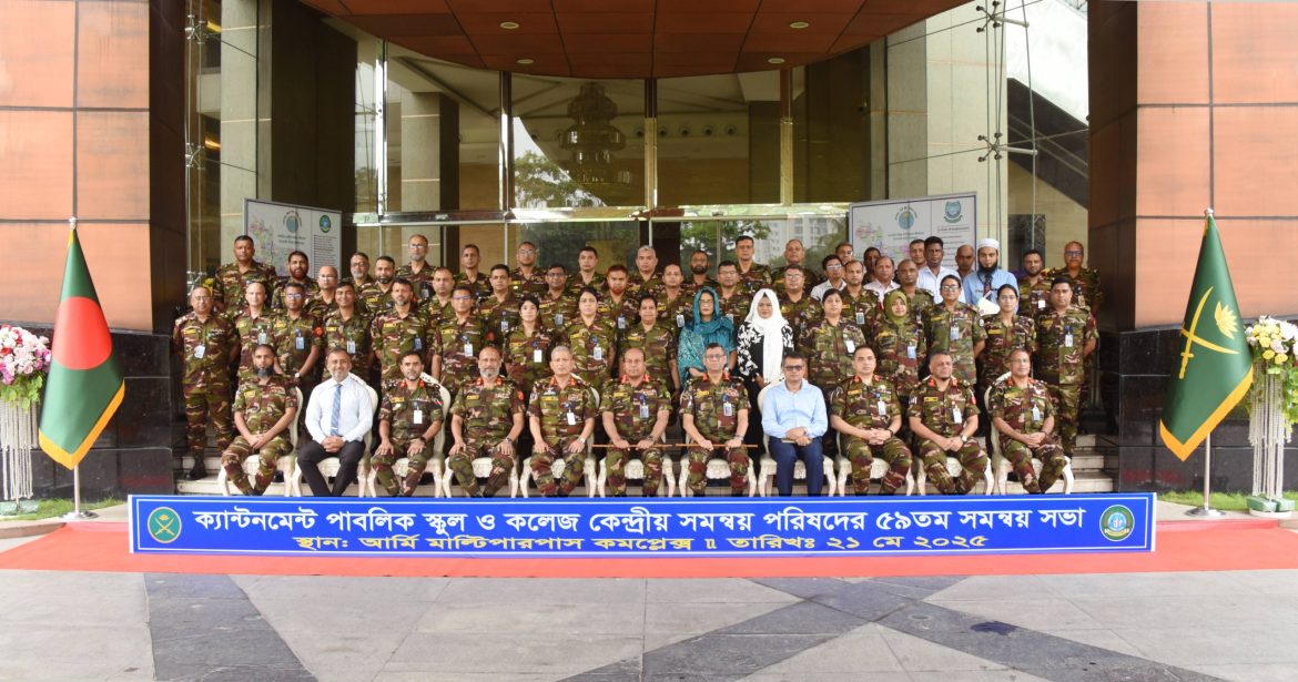 ঢাকা, ২২ মে ২০২৫ (বৃহস্পতিবার): বাংলাদেশ সেনাবাহিনী কর্তৃক পরিচালিত ৬৩টি ক্যান্টনমেন্ট পাবলিক এবং ইংরেজি মাধ্যম স্কুল ও কলেজ এর কেন্দ্রীয় সমন্বয় পরিষদের সভা ২১-২২ মে ২০২৫ তারিখে আর্মি মাল্টিপারপাস কমপ্লেক্স, ঢাকা সেনানিবাসে অনুষ্ঠিত হয়। সমন্বয় সভায় সেনাবাহিনী কর্তৃক পরিচালিত ক্যান্টনমেন্ট পাবলিক এবং ইংরেজি মাধ্যম স্কুল ও কলেজ এর কেন্দ্রীয় সমন্বয় পরিষদের সভাপতি ও বাংলাদেশ সেনাবাহিনীর চিফ অব জেনারেল স্টাফ লেফটেন্যান্ট জেনারেল মিজানুর রহমান শামীম, বিপি, এসবিপি, ওএসপি, বিএএম, এনডিসি, পিএসসি প্রধান অতিথি হিসেবে উপস্থিত ছিলেন। উক্ত সভায় প্রধান অতিথি তাঁর দিকনির্দেশনামূলক বক্তব্য প্রদান করেন এবং শিক্ষা বিস্তারে সেনাবাহিনী পরিচালিত প্রতিষ্ঠানসমূহের অবদানকে আরও গতিশীল ও বেগবান করার আহ্বান জানান।