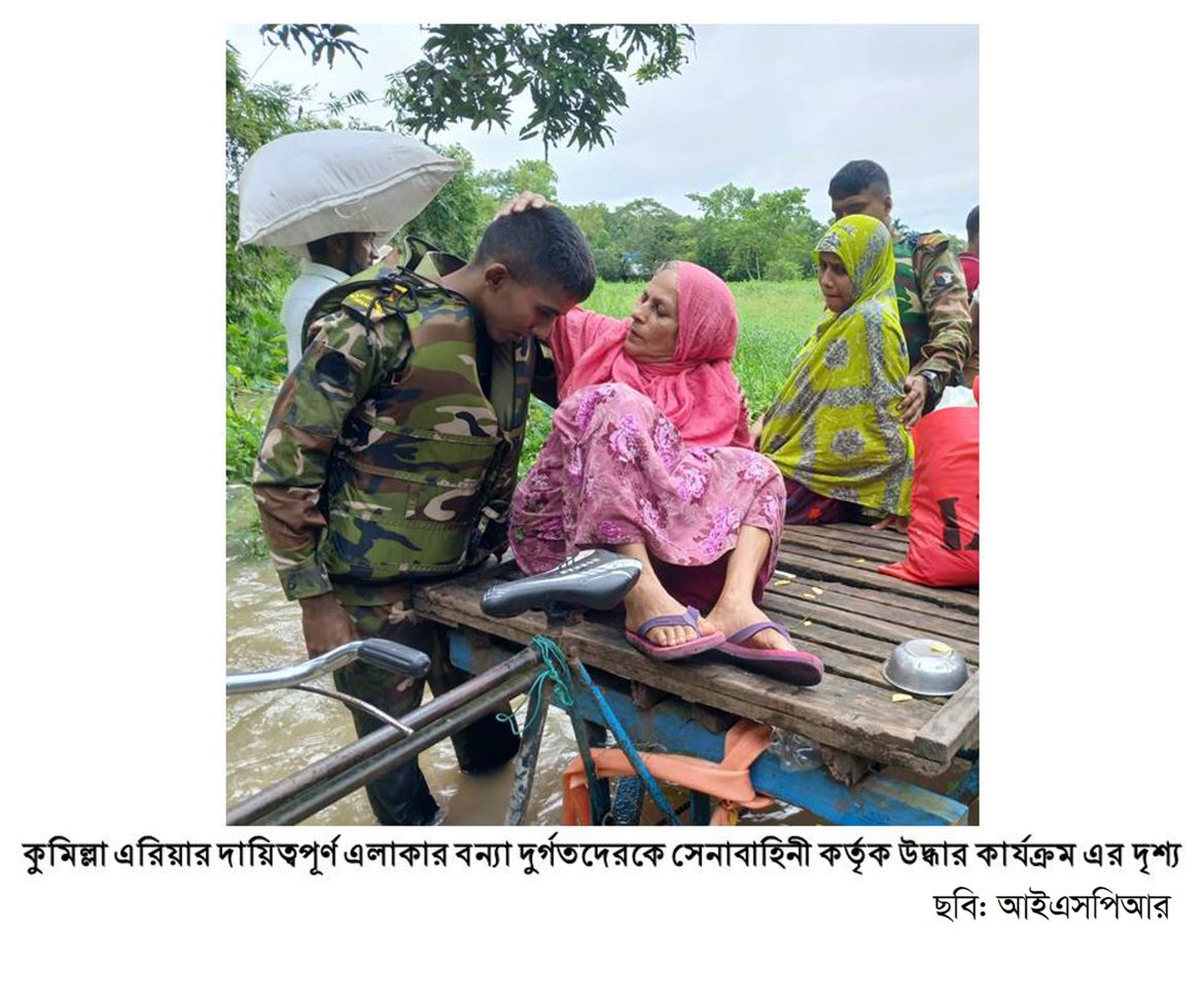বাংলাদেশ সেনাবাহিনী কর্তৃক বন্যার্তদের উদ্ধার ও ত্রাণ বিতরণ কার্যক্রমের অগ্রগতি প্রতিবেদন