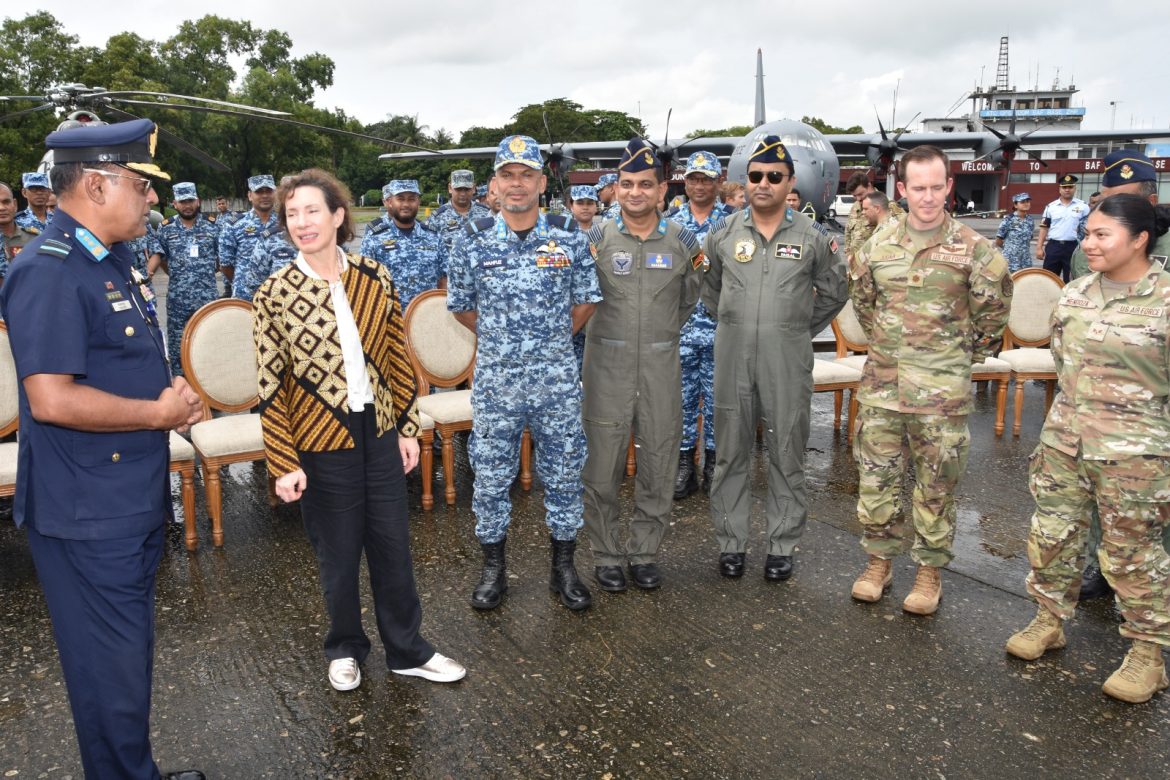 চট্টগ্রাম, ১৬ সেপ্টেম্বরঃ অদ্য ১৬ সেপ্টেম্বর ২০২৫ (মঙ্গলবার) বাংলাদেশ বিমান বাহিনী ও যুক্তরাষ্ট্রের প্যাসিফিক এয়ার ফোর্সের অংশগ্রহণে চলমান ৭ দিনব্যাপী যৌথ মহড়া “অপারেশন প্যাসিফিক এঞ্জেল ২৫-৩’’ পরিদর্শন-এর উদ্দেশ্যে বাংলাদেশে নিযুক্ত যুক্তরাষ্ট্রের চার্জ ডি অ্যাফেয়ার্স অ্যাড ইন্টেরিম Tracey Ann Jacobson বাংলাদেশ বিমান বাহিনী ঘাঁটি জহুরুল হক, চট্টগ্রাম আগমন করেন। এসময় তিনি বিভিন্ন SMEE (Subject Matter Expertise Exchange) সাইট পরিদর্শন করেন এবং SMEE কার্যক্রম Search & Rescue Maritime and Flood Operation এবং Crew Resource Management নিবিড়ভাবে পর্যবেক্ষণ করেন। পরিশেষে, তিনি দুই দেশের বিমান বাহিনীর সদস্যগণের সাথে কুশল বিনিময় করেন। উক্ত পরিদর্শনকালে যুক্তরাষ্ট্র দূতাবাসের ঊর্ধ্বতন ব্যক্তিবর্গ ছাড়াও বাংলাদেশ বিমান বাহিনী ঘাঁটি জহুরুল হক এর সংশ্লিষ্ট কর্মকর্তা ও সদস্যবৃন্দ এবং যুক্তরাষ্ট্রের প্যাসিফিক এয়ার ফোর্সের সদস্যগণ উপস্থিত ছিলেন।