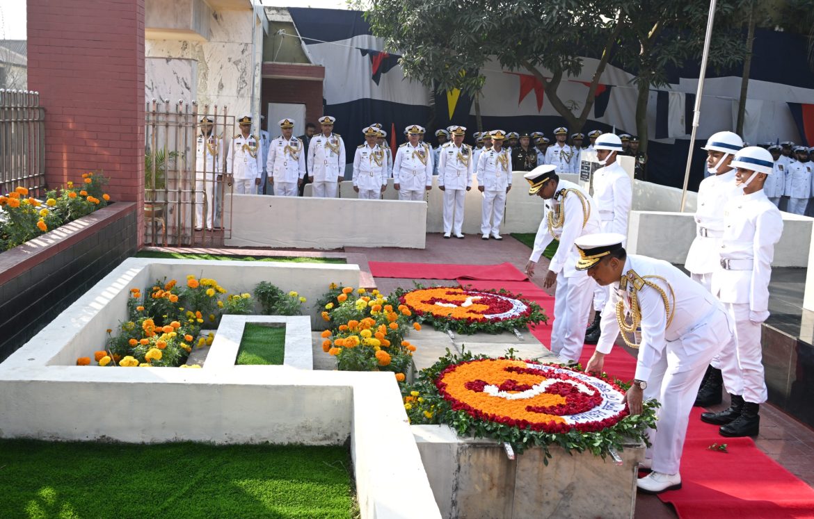 ঢাকা, ১০ ডিসেম্বর ২০২৫: যথাযোগ্য মর্যাদা ও ভাবগাম্ভীর্যের মধ্য দিয়ে মহান মুক্তিযুদ্ধে সর্বোচ্চ আত্মত্যাগকারী বীরশ্রেষ্ঠ শহিদ মোহাম্মদ রুহুল আমিন ও বীর বিক্রম শহিদ মোহাম্মদ মহিবুল্লাহ এর ৫৪তম শাহাদাত বার্ষিকী পালিত হয়েছে। এ উপলক্ষ্যে আজ বুধবার (১০-১২-২০২৫) শহিদগণের স্মৃতিস্তম্ভে কমান্ডার খুলনা নৌ অঞ্চল রিয়ার এডমিরাল এ কে এম জাকির হোসেন পুষ্পস্তবক অর্পণ ও গার্ড অব অনার প্রদান করেন। এ সময় খুলনা নৌ অঞ্চলের উল্লেখযোগ্য সংখ্যক কর্মকর্তা ও নৌ সদস্যবৃন্দ উপস্থিত ছিলেন। পরে শহিদদের আত্মার মাগফিরাত কামনা করে বিশেষ মোনাজাত করা হয়।