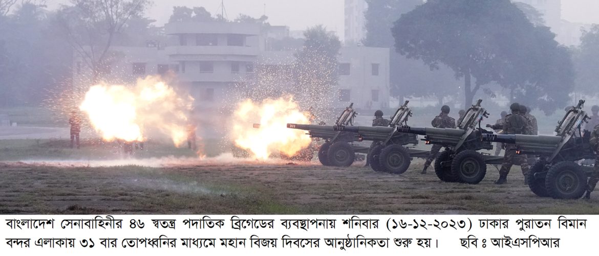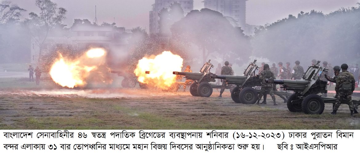 মহান বিজয় দিবস-২০২৩ উপলক্ষে সেনাবাহিনী কর্তৃক ৩১ বার তোপধ্বনির মাধ্যমেমহান স্বাধীনতা যুদ্ধে নিহত বীর শহীদদের প্রতি গান স্যালুট প্রদর্শন