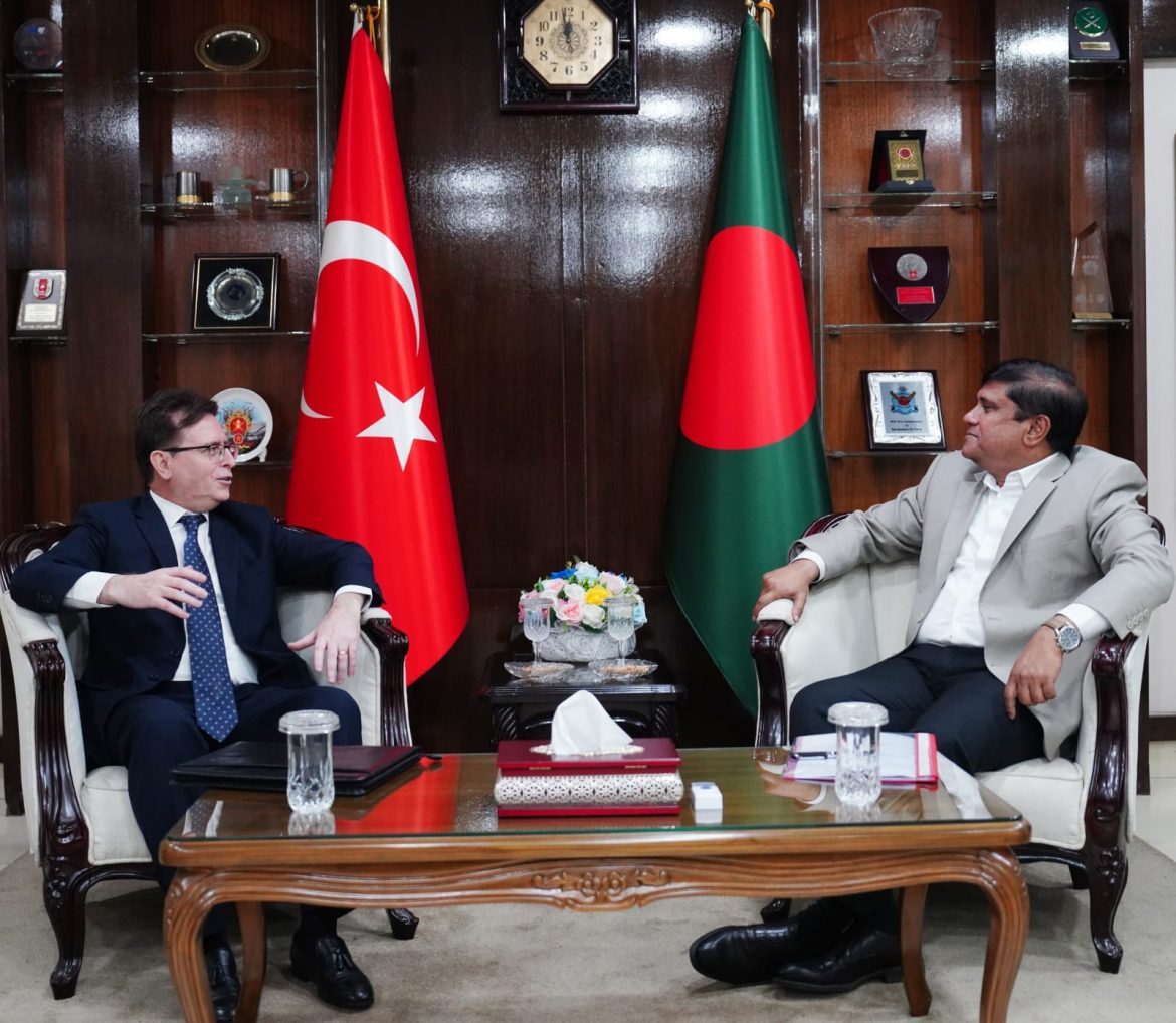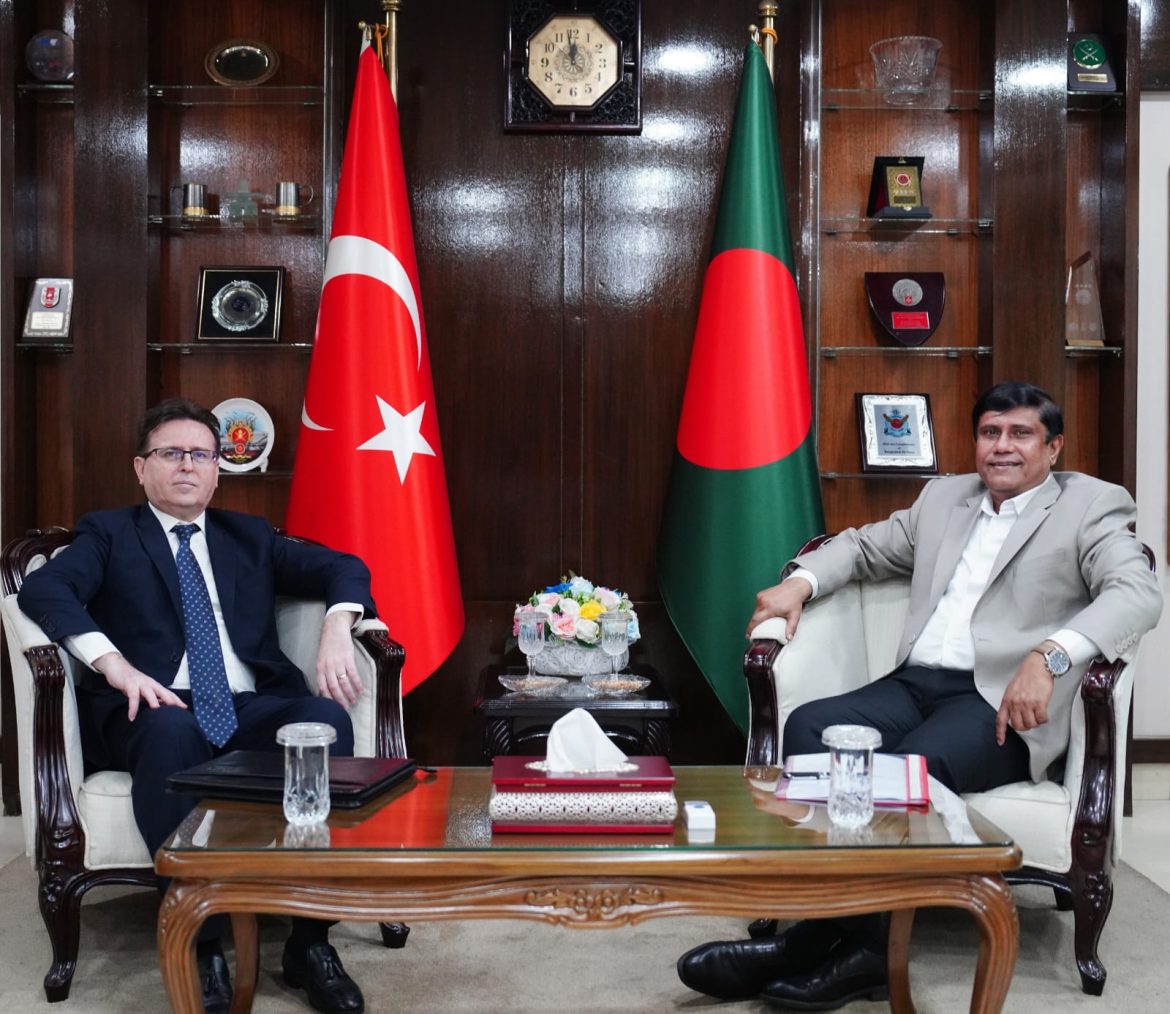 ঢাকা, ৬ এপ্রিল ২০২৬: মাননীয় প্রধানমন্ত্রীর প্রতিরক্ষা উপদেষ্টা ব্রিগেডিয়ার জেনারেল ড: একেএম শামছুল ইসলাম, পিএসসি, জি (অব:) এর সঙ্গে তাঁর কার্যালয়ে বাংলাদেশে নিযুক্ত তুরস্কের রাষ্ট্রদূত রামিস সেন ঢাকা সেনানিবাসস্থ সশস্ত্র বাহিনী বিভাগে আজ সোমবার (৬ এপ্রিল ২০২৬) সৌজন্য সাক্ষাৎ করেন।