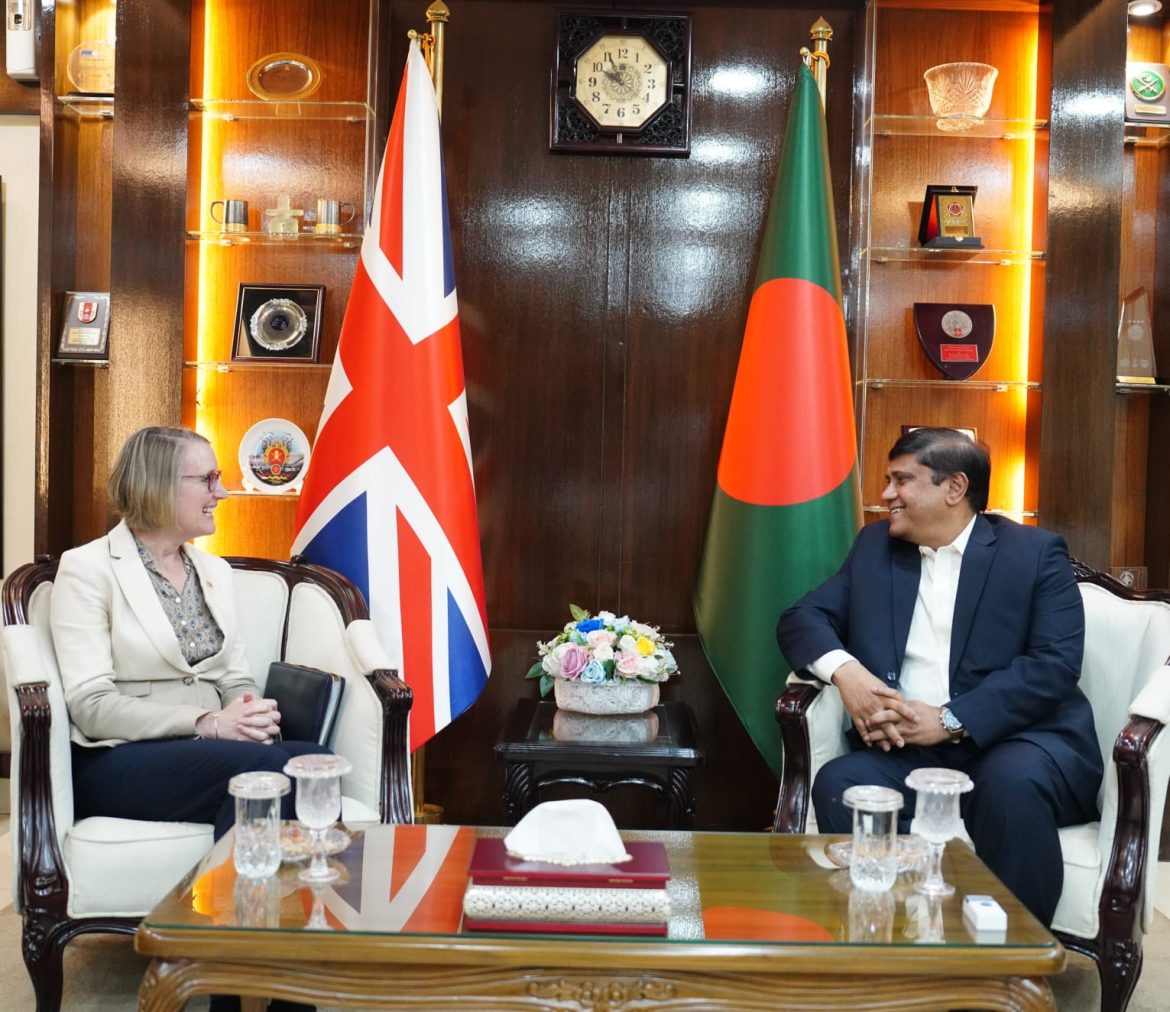 ঢাকা, ০৯ এপ্রিল ২০২৬: প্রধানমন্ত্রীর প্রতিরক্ষা উপদেষ্টা ব্রিগেডিয়ার জেনারেল ড. এ কে এম শামছুল ইসলাম পিএসসি, জি, (অব:) এর সঙ্গে আজ বৃহস্পতিবার (০৯-০৪-২০২৬) বাংলাদেশে নিযুক্ত যুক্তরাজ্যের হাইকমিশনার H.E. Sarah Cooke সৌজন্য সাক্ষাৎ করেন। যুক্তরাজ্যের হাইকমিশনারের নেতৃত্বে চার সদস্যের প্রতিনিধি দলের এ সাক্ষাৎকার অনুষ্ঠান ঢাকা সেনানিবাসের সশস্ত্র বাহিনী বিভাগে প্রতিরক্ষা উপদেষ্টার কার্যালয়ে অনুষ্ঠিত হয়।