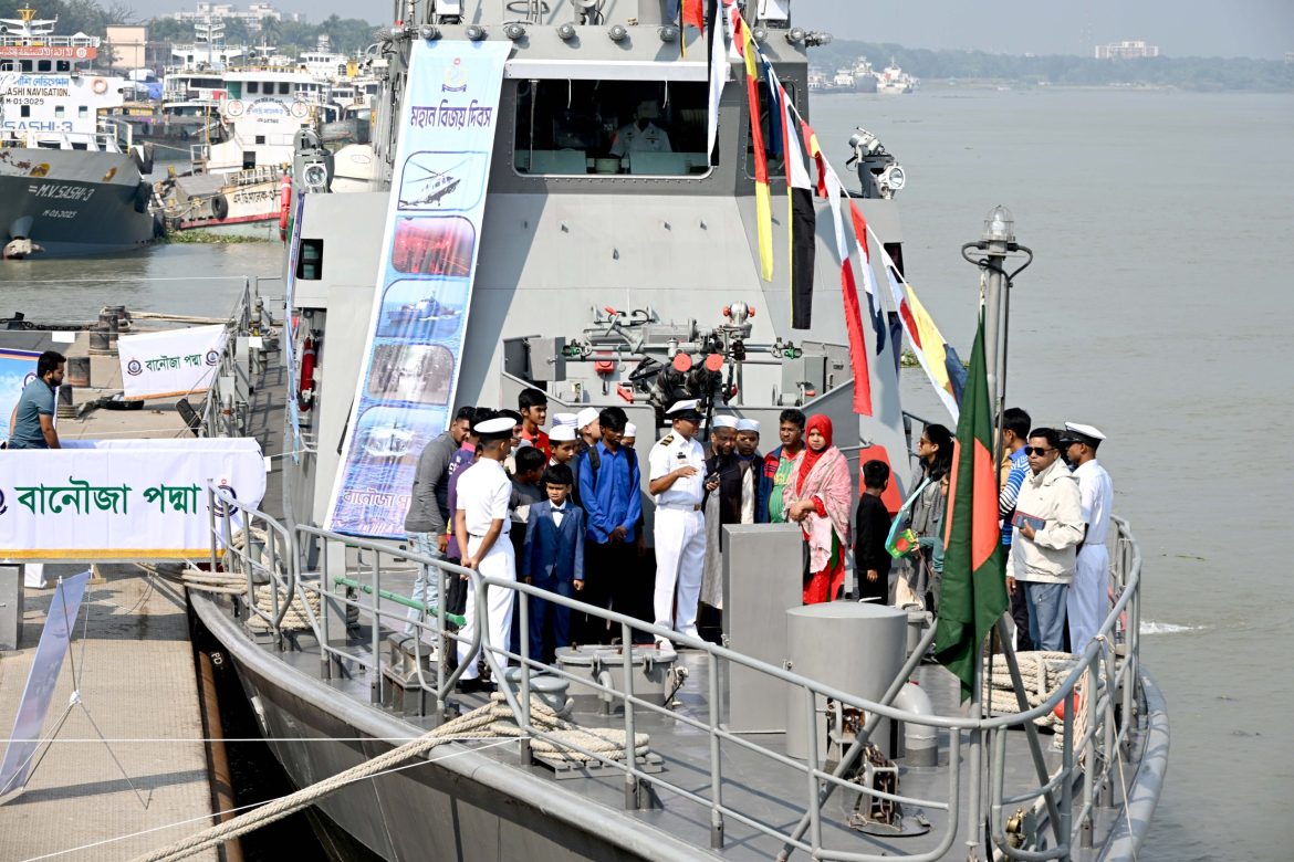 এবছর ৫৪তম বিজয় দিবস উপলক্ষ্যে গিনেস বুক অব ওয়ার্ল্ড রেকর্ডস অর্জনের জন্য ১২ হাজার ফুট উচ্চতা থেকে ৫৪ জন দক্ষ প্যারা জাম্পার পতাকা বহন করে প্যারা জাম্প করে। দিবসটিকে আরও মহিমান্বিত ও আকর্ষণীয় করে তুলতে জাতীয় প্যারেড স্কয়ারে মনোজ্ঞ ফ্লাই পাস্ট প্রদর্শিত হয়। নৌবাহিনীর সুদক্ষ প্যারা টুপারস এবং চৌকশ পাইলটগণ সেনা ও বিমান বাহিনীর সদস্যদের সাথে প্যারাজাম্প ও ফ্লাই পাস্টে অংশগ্রহণ করে অত্যন্ত সফলতার সাথে তাদের সক্ষমতা ও নৈপুণ্য প্রদর্শন করে। এই আয়োজনের মাধ্যমে জাতীয় চেতনায় উদ্বুদ্ধ সুপ্রশিক্ষিত নৌসদস্যরা তাদের উদ্যম, শৃঙ্খলা ও পেশাগত সক্ষমতার মাধ্যমে একটি শক্তিশালী ও আত্মবিশ্বাসী বাহিনী গঠনে দেশের মানুষকে আশান্বিত করে। সেই সাথে দিবসটির তাৎপর্য তুলে ধরে সংসদ ভবনের দক্ষিণ প্লাজায় অন্যান্য বাহিনীর সাথে নৌবাহিনীর অর্কেস্ট্রা দল এবং চট্টগ্রামের পতেঙ্গা সমুদ্র সৈকত ও খুলনার শহীদ হাদিস পার্কে বাংলাদেশ নৌবাহিনীর সুসজ্জিত ব্যান্ড দল মনোমুগ্ধকর বাদ্য পরিবেশনার মাধ্যমে তরুণ সমাজকে দেশপ্রেমে উদ্বুদ্ধ করে। এছাড়াও, বাংলাদেশ নৌবাহিনীর জাহাজসমূহের মধ্যে ঢাকা সদর ঘাঁটে বিএনডিবি গাংচিল, নৌ ইউনিট নারায়ণগঞ্জ নেভাল বার্থে বানৌজা শহীদ ফরিদ, চট্টগ্রাম নেভাল বার্থে বানৌজা সমুদ্র জয়, খুলনা বিআইডব্লিউটিএ লঞ্চ টার্মিনালে বানৌজা পদ্মা, মোংলা দিগরাজ নেভাল বার্থে বানৌজা আবু বকর, বরিশাল বিআইডব্লিউটিএ ঘাঁটে বানৌজা অদম্য এবং পটুয়াখালী পায়রা বন্দর জেটিতে বানৌজা কুশিয়ারা ১২০০ হতে ১৬০০ ঘটিকা পর্যন্ত সর্বসাধারণের পরিদর্শনের জন্য উন্মুক্ত রাখা হয়। পাশাপাশি চট্টগ্রামের লাভলেইনে অবস্থিত মেরিটাইম মিউজিয়াম জনসাধারণের জন্য উন্মুক্ত রাখা হয়। নৌবাহিনীর জাহাজ ও মিউজিয়াম পরিদর্শন এবং বাদ্য পরিবেশনা উপভোগ করতে পেরে জনসাধারণ অত্যন্ত উচ্ছ্বসিত।