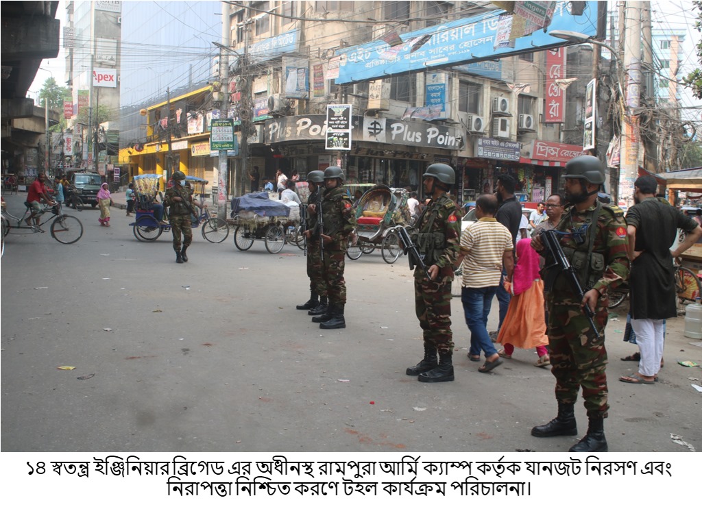ঢাকা, ১০ এপ্রিল ২০২৫ (বৃহস্পতিবার): দেশের চলমান পরিস্থিতিতে আইনশৃঙ্খলা নিয়ন্ত্রণে রাখার লক্ষ্যে দেশব্যাপী পেশাদারিত্বের সাথে কাজ করে চলেছে বাংলাদেশ সেনাবাহিনী। এরই ধারাবাহিকতায় গত ০৩ এপ্রিল ২০২৫ থেকে ০৯ এপ্রিল ২০২৫ তারিখ পর্যন্ত বাংলাদেশ সেনাবাহিনীর বিভিন্ন পদাতিক ডিভিশন ও স্বতন্ত্র ব্রিগেডের অধীনস্থ ইউনিটসমূহ কর্তৃক অন্যান্য আইনশৃঙ্খলা রক্ষাকারী বাহিনীর সমন্বয়ে রাজধানীসহ দেশের বিভিন্ন এলাকায় বেশকিছু যৌথ অভিযান পরিচালনা করা হয়।