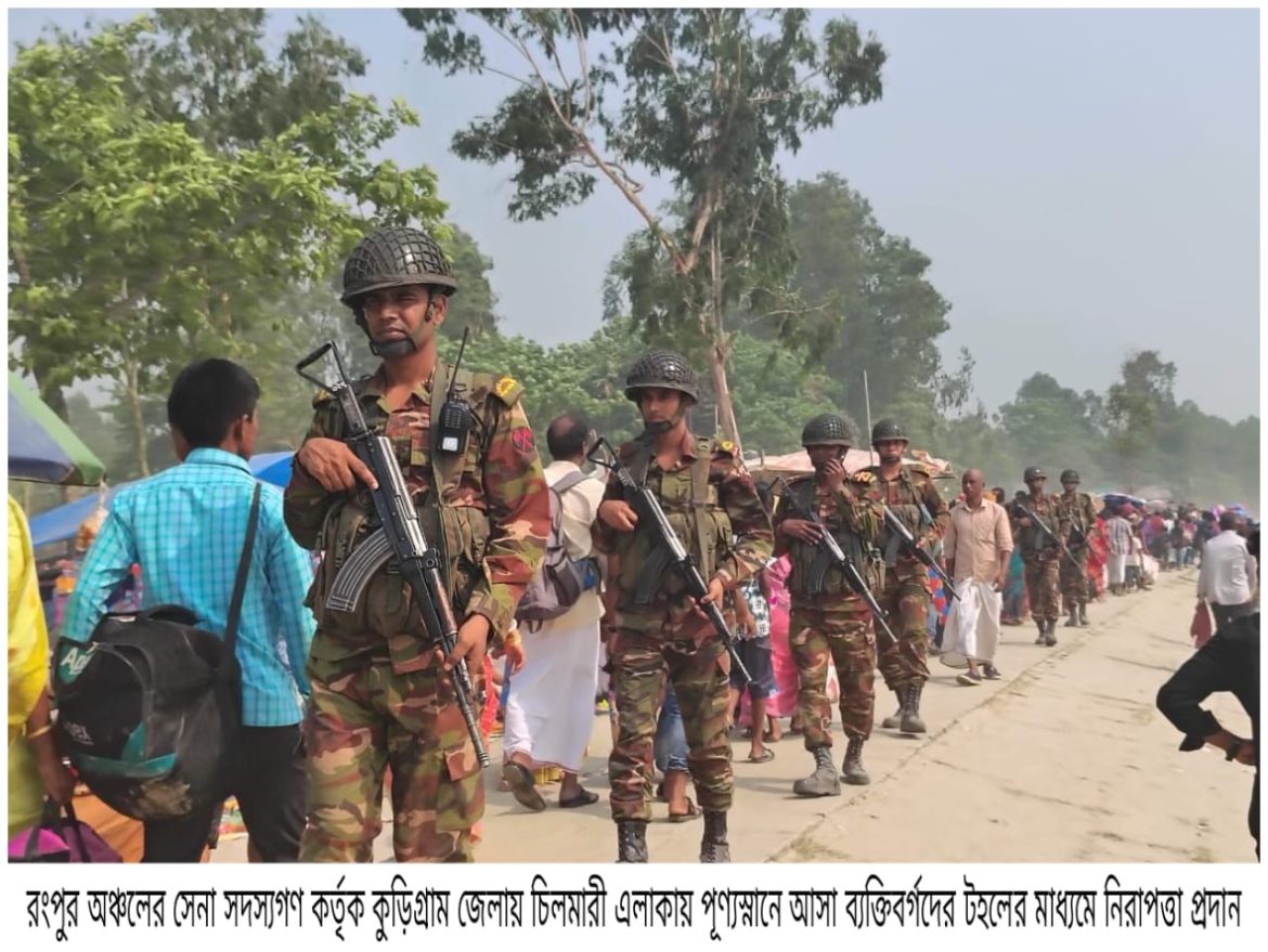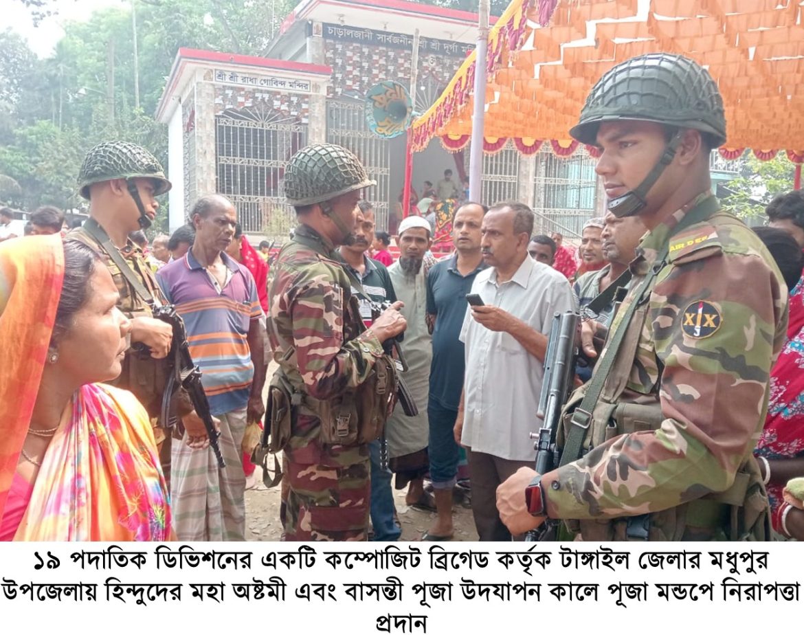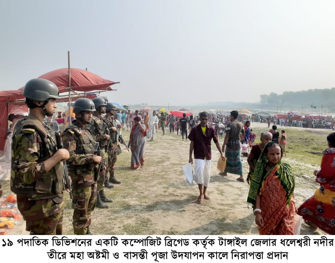 এছাড়াও, ঈদ-উল-ফিতর উপলক্ষ্যে ঈদযাত্রাকে নির্বিঘ্ন ও স্বস্তিদায়ক করতে গণপরিবহনের টার্মিনাল ও স্টেশনসমূহে টহল, সচেতনতামূলক মাইকিং, কালোবাজারি রোধ ও টিকিটের সুষ্ঠু বণ্টন নিশ্চিত করেছে বাংলাদেশ সেনাবাহিনী। মহাসড়কে বিকল্প রুট, পার্কিং ব্যবস্থা, ট্রাফিক নিয়ন্ত্রণ এবং রোড ব্লক প্রতিরোধে দিনরাত কাজ করেছে সেনা টহল দল, যা ঘরমুখো মানুষের যাত্রাকে করেছে সহজ ও নিরাপদ। বিভিন্ন ব্যবসা প্রতিষ্ঠানে হামলা, ভাঙচুর ও লুটের ঘটনার প্রেক্ষিতে অভিযান পরিচালনা করে সম্পৃক্তদের আটক করে আইনি ব্যবস্থা গ্রহণ করাসহ বিভিন্ন ব্যবসা প্রতিষ্ঠানে সার্বিক নিরাপত্তা প্রদান করেছে বাংলাদেশ সেনাবাহিনী। এছাড়াও, নিষিদ্ধ পলিথিন কারখানা সিলগালাসহ অবৈধ পার্কিং এবং রাস্তা ও ফুটপাত বেদখলকারীদের অপসারণ করা হয়। এছাড়া, সনাতন ধর্মাবলম্বীদের ধর্মীয় উৎসব মহা অষ্টমী, পূণ্যস্নান ও বাসন্তী পূজা উপলক্ষ্যে দেশের বিভিন্ন অঞ্চলে পূজামন্ডপ ও গুরুত্বপূর্ণ ধর্মীয় স্থানে নিরাপত্তা নিশ্চিত করেছে বাংলাদেশ সেনাবাহিনী।