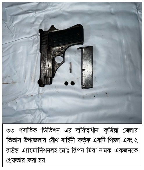 যৌথ বাহিনী কর্তৃক গত ০৩ এপ্রিল ২০২৫ থেকে ০৯ এপ্রিল ২০২৫ তারিখ পর্যন্ত পরিচালিত উল্লেখযোগ্য অভিযান
