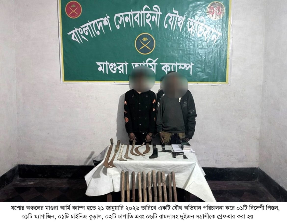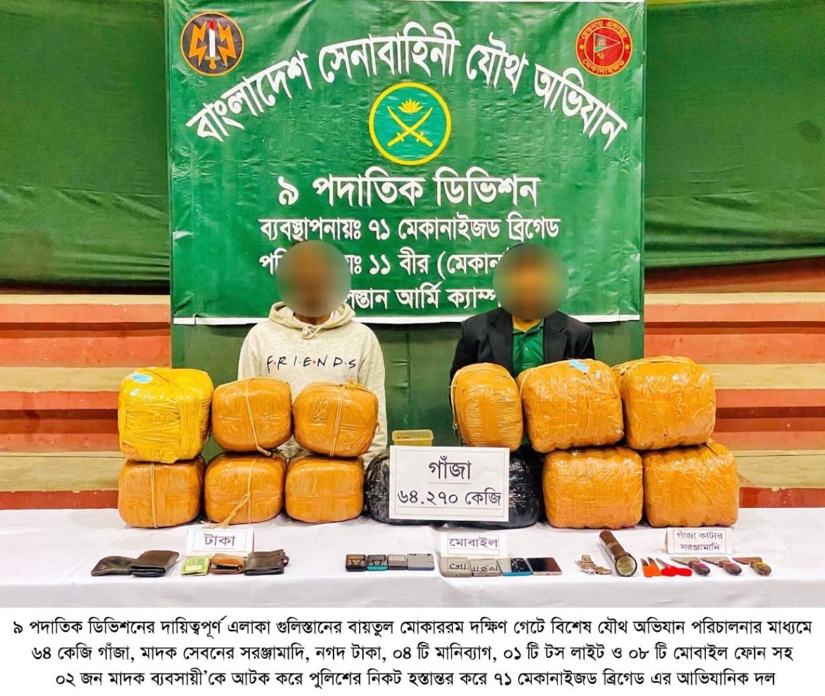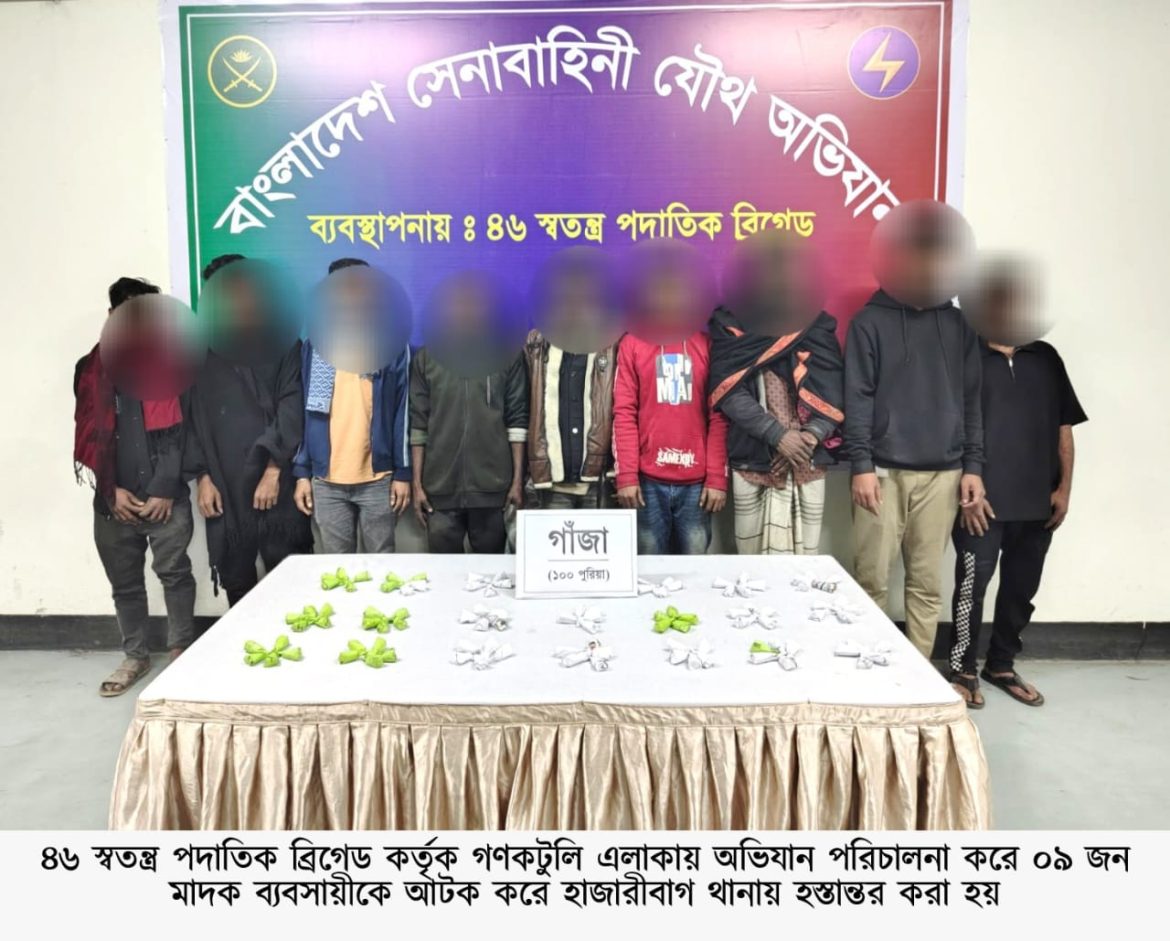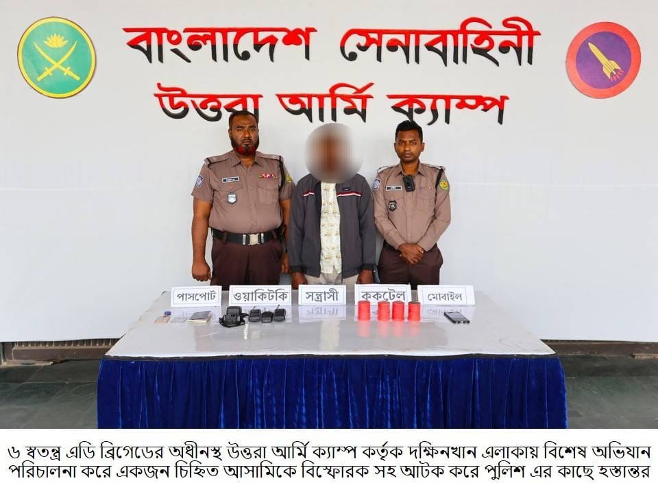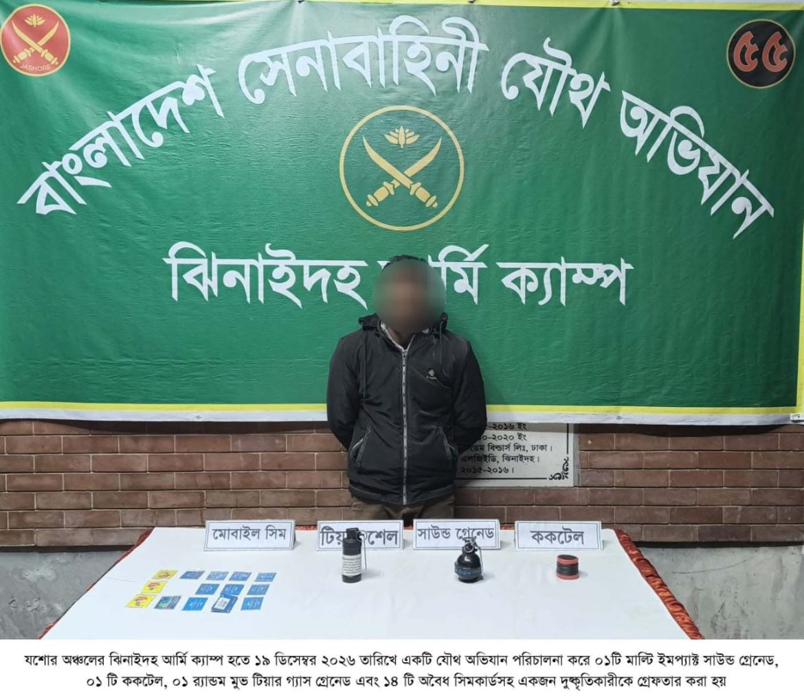 ঢাকা, ২৩ জানুয়ারি ২০২৬ (শুক্রবার): দেশের চলমান পরিস্থিতিতে সামগ্রিক আইনশৃঙ্খলা পরিস্থিতি নিয়ন্ত্রণে রাখার উদ্দেশ্যে বাংলাদেশ সেনাবাহিনী সর্বোচ্চ পেশাদারিত্ব, শৃঙ্খলা ও নিষ্ঠার সাথে দায়িত্ব পালন করে যাচ্ছে। এরই ধারাবাহিকতায়, গত ১৬ জানুয়ারি ২০২৬ থেকে ২২ জানুয়ারি ২০২৬ তারিখ পর্যন্ত বাংলাদেশ সেনাবাহিনীর বিভিন্ন পদাতিক ডিভিশন ও স্বতন্ত্র ব্রিগেডের অধীনস্থ ইউনিটসমূহ কর্তৃক অন্যান্য আইনশৃঙ্খলা রক্ষাকারী বাহিনীর সমন্বয়ে রাজধানীসহ দেশের বিভিন্ন এলাকায় বেশকিছু যৌথ অভিযান পরিচালনা করা হয়। এ সকল যৌথ অভিযানে সন্ত্রাসী, মাদক ব্যবসায়ী, মাদকাসক্ত, ডাকাত সদস্য, কিশোর গ্যাং, চোরাকারবারিসহ মোট ২৭৮ জন সন্দেহভাজন অপরাধীকে হাতেনাতে গ্রেফতার করা হয়। গ্রেফতারকৃতদের নিকট হতে ২২ টি অবৈধ আগ্নেয়াস্ত্র, ৮২২ রাউন্ড বিভিন্ন ধরনের গোলাবারুদ, ৭ টি ককটেল, দেশীয় অস্ত্র ও মাদকদ্রব্য উদ্ধার করা হয়। আটককৃতদের প্রয়োজনীয় জিজ্ঞাসাবাদ এবং আইনি কার্যক্রম সম্পন্নের জন্য সংশ্লিষ্ট এলাকার থানায় হস্তান্তর করা হয়েছে।