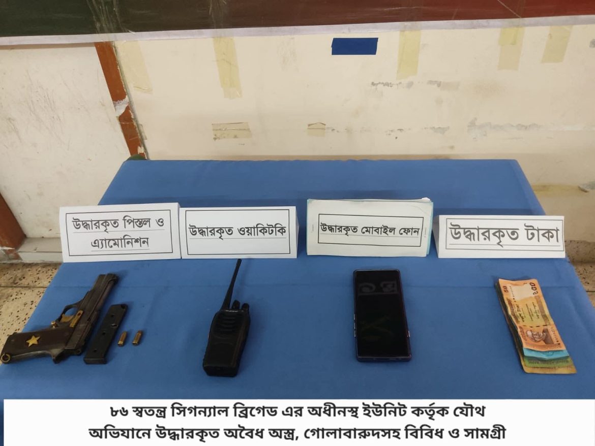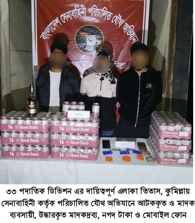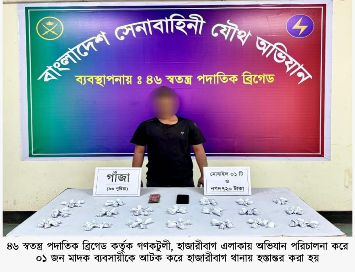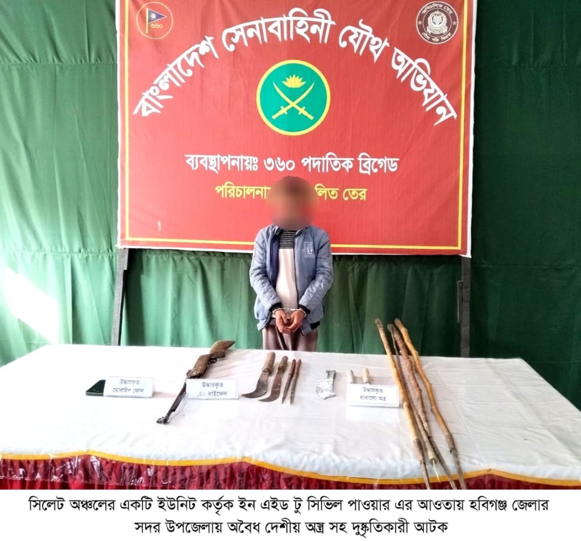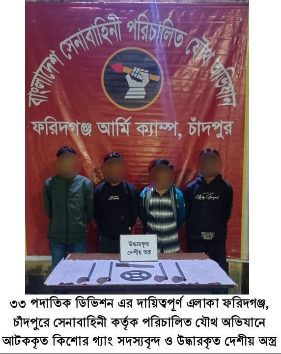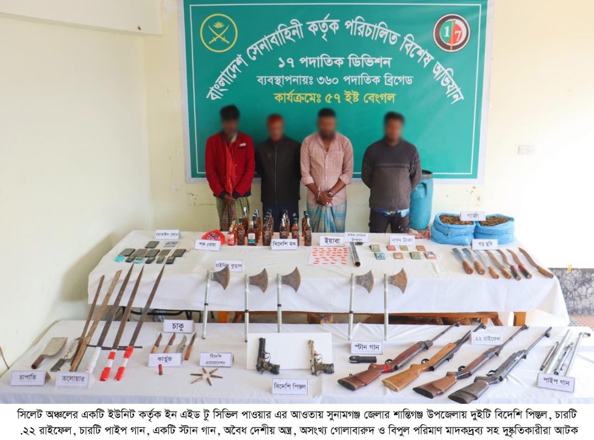 ঢাকা, ২৩ জানুয়ারি ২০২৬ (শুক্রবার): দেশের চলমান পরিস্থিতিতে সামগ্রিক আইনশৃঙ্খলা পরিস্থিতি নিয়ন্ত্রণে রাখার উদ্দেশ্যে বাংলাদেশ সেনাবাহিনী সর্বোচ্চ পেশাদারিত্ব, শৃঙ্খলা ও নিষ্ঠার সাথে দায়িত্ব পালন করে যাচ্ছে। এরই ধারাবাহিকতায়, গত ১৬ জানুয়ারি ২০২৬ থেকে ২২ জানুয়ারি ২০২৬ তারিখ পর্যন্ত বাংলাদেশ সেনাবাহিনীর বিভিন্ন পদাতিক ডিভিশন ও স্বতন্ত্র ব্রিগেডের অধীনস্থ ইউনিটসমূহ কর্তৃক অন্যান্য আইনশৃঙ্খলা রক্ষাকারী বাহিনীর সমন্বয়ে রাজধানীসহ দেশের বিভিন্ন এলাকায় বেশকিছু যৌথ অভিযান পরিচালনা করা হয়। এ সকল যৌথ অভিযানে সন্ত্রাসী, মাদক ব্যবসায়ী, মাদকাসক্ত, ডাকাত সদস্য, কিশোর গ্যাং, চোরাকারবারিসহ মোট ২৭৮ জন সন্দেহভাজন অপরাধীকে হাতেনাতে গ্রেফতার করা হয়। গ্রেফতারকৃতদের নিকট হতে ২২ টি অবৈধ আগ্নেয়াস্ত্র, ৮২২ রাউন্ড বিভিন্ন ধরনের গোলাবারুদ, ৭ টি ককটেল, দেশীয় অস্ত্র ও মাদকদ্রব্য উদ্ধার করা হয়। আটককৃতদের প্রয়োজনীয় জিজ্ঞাসাবাদ এবং আইনি কার্যক্রম সম্পন্নের জন্য সংশ্লিষ্ট এলাকার থানায় হস্তান্তর করা হয়েছে।