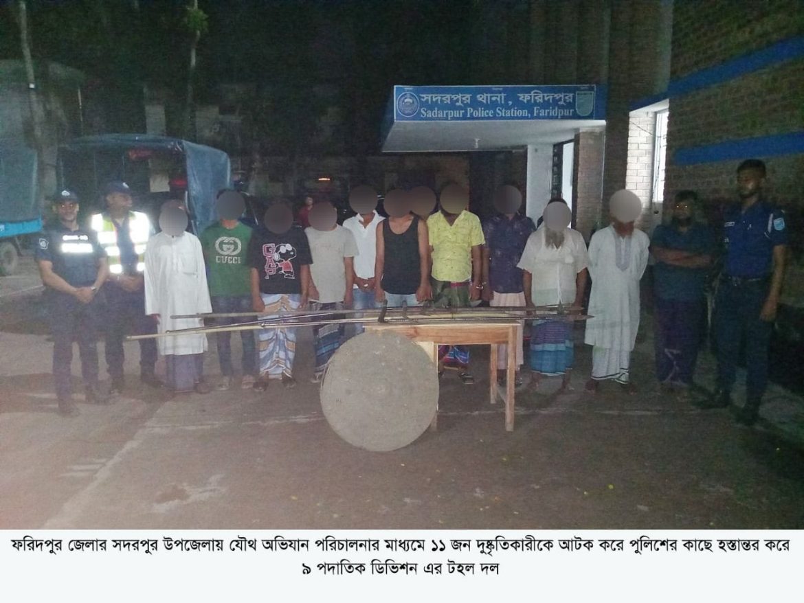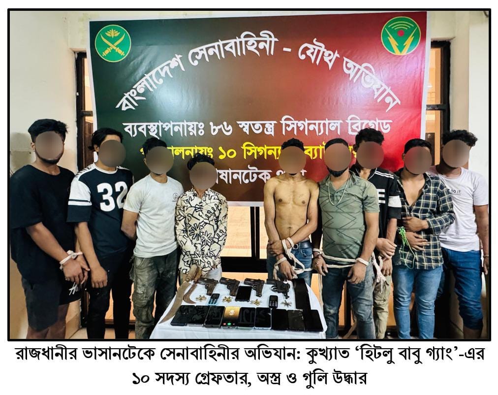 ঢাকা, ২২ মে ২০২৫ (বৃহস্পতিবার): দেশের চলমান পরিস্থিতিতে আইনশৃংখলা নিয়ন্ত্রণে রাখার লক্ষ্যে দেশব্যাপী পেশাদারিত্বের সাথে কাজ করে চলেছে বাংলাদেশ সেনাবাহিনী। এরই ধারাবাহিকতায়, গত ১৫ মে ২০২৫ থেকে ২১ মে ২০২৫ তারিখ পর্যন্ত বাংলাদেশ সেনাবাহিনীর বিভিন্ন পদাতিক ডিভিশন ও স্বতন্ত্র ব্রিগেডের অধীনস্থ ইউনিটসমূহ কর্তৃক, অন্যান্য আইনশৃঙ্খলা রক্ষাকারী বাহিনীর সমন্বয়ে রাজধানীসহ দেশের বিভিন্ন এলাকায় বেশকিছু যৌথ অভিযান পরিচালনা করা হয়। এ সকল যৌথ অভিযানে হত্যা মামলার আসামি, অবৈধ অস্ত্রধারী, তালিকাভুক্ত সন্ত্রাসী, চোরাকারবারী, কিশোর গ্যাং সদস্য, অবৈধ মাটি উত্তোলনকারী, মাদক ব্যবসায়ী, মাদকাসক্ত এবং দালালচক্রের সদস্যসহ মোট ২৫৮ জন অপরাধীকে হাতেনাতে গ্রেফতার করা হয়। গ্রেফতারকৃত অপরাধীদের নিকট হতে ১৪টি অবৈধ আগ্নেয়াস্ত্র, ১০৫টি বিভিন্ন ধরনের গোলাবারুদ, বিভিন্ন মাদকদ্রব্য, সন্ত্রাসী কাজে ব্যবহৃত বিভিন্ন প্রকার দেশীয় অস্ত্র, চোরাই মোবাইল ফোন ও নগদ অর্থ উদ্ধার করা হয়। আটককৃতদের প্রয়োজনীয় জিজ্ঞাসাবাদ এবং আইনি কার্যক্রম সম্পন্নের জন্য সংশ্লিষ্ট এলাকার থানায় হস্তান্তর করা হয়েছে।
