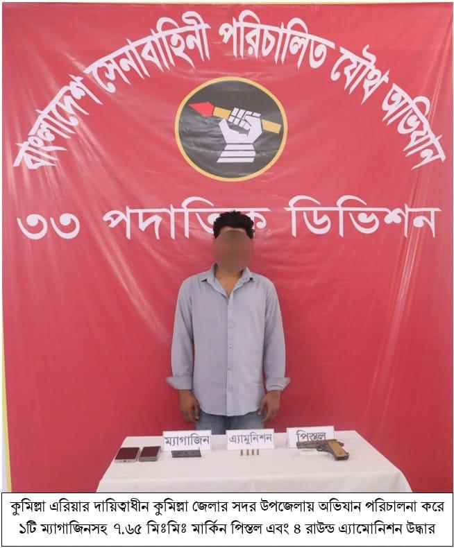 দেশের সার্বিক আইনশৃঙ্খলা পরিস্থিতি স্বাভাবিক রাখতে বাংলাদেশ সেনাবাহিনী কর্তৃক এ ধরনের অভিযান অব্যাহত রয়েছে। সাধারণ জনগণকে যেকোন সন্দেহজনক কার্যকলাপের বিষয়ে নিকটস্থ সেনা ক্যাম্পে তথ্য প্রদান করার জন্য অনুরোধ জানানো হচ্ছে।
