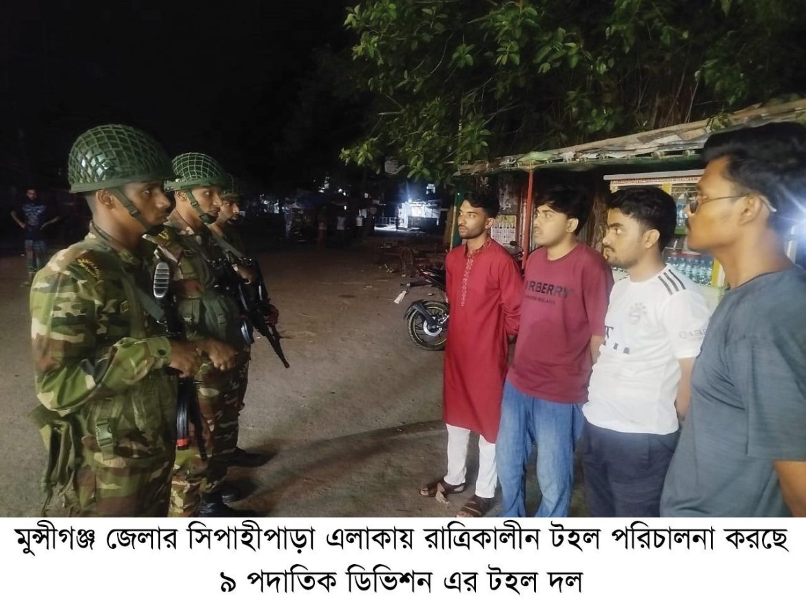 দেশব্যাপী জননিরাপত্তা নিশ্চিত করতে বাংলাদেশ সেনাবাহিনী বিভিন্ন এলাকায় নিয়মিত টহল ও নিরাপত্তা কার্যক্রম পরিচালনা করছে। শিল্পাঞ্চলসমূহে সম্ভাব্য অস্থিরতা রোধে মালিক ও শ্রমিকদের সঙ্গে মতবিনিময় ও সমঝোতার মাধ্যমে বেতন-বোনাস পরিশোধ নিশ্চিতে সেনা টহলদল গুরুত্বপূর্ণ ভূমিকা পালন করছে। এছাড়াও, আসন্ন পবিত্র ঈদ-উল-আযহা উপলক্ষ্যে দেশের বিভিন্ন স্থানে বসা অস্থায়ী পশুরহাটে সার্বক্ষণিক নজরদারী, নিরাপত্তা ও পর্যবেক্ষণ নিশ্চিত করছে। পাশাপাশি, ঈদ যাত্রাকে সহজ করতে নির্বিঘ্নে সড়কে যান চলাচল নিশ্চিতকরণ ও টিকিট কালোবাজারি রোধকল্পে সেনাবাহিনী বিশেষ টহল কার্যক্রম পরিচালনা করছে।