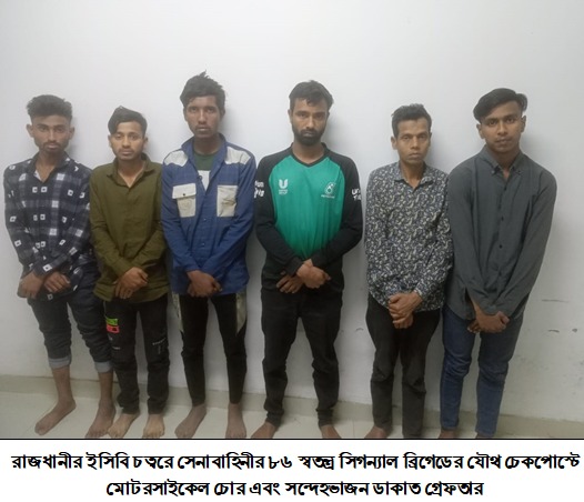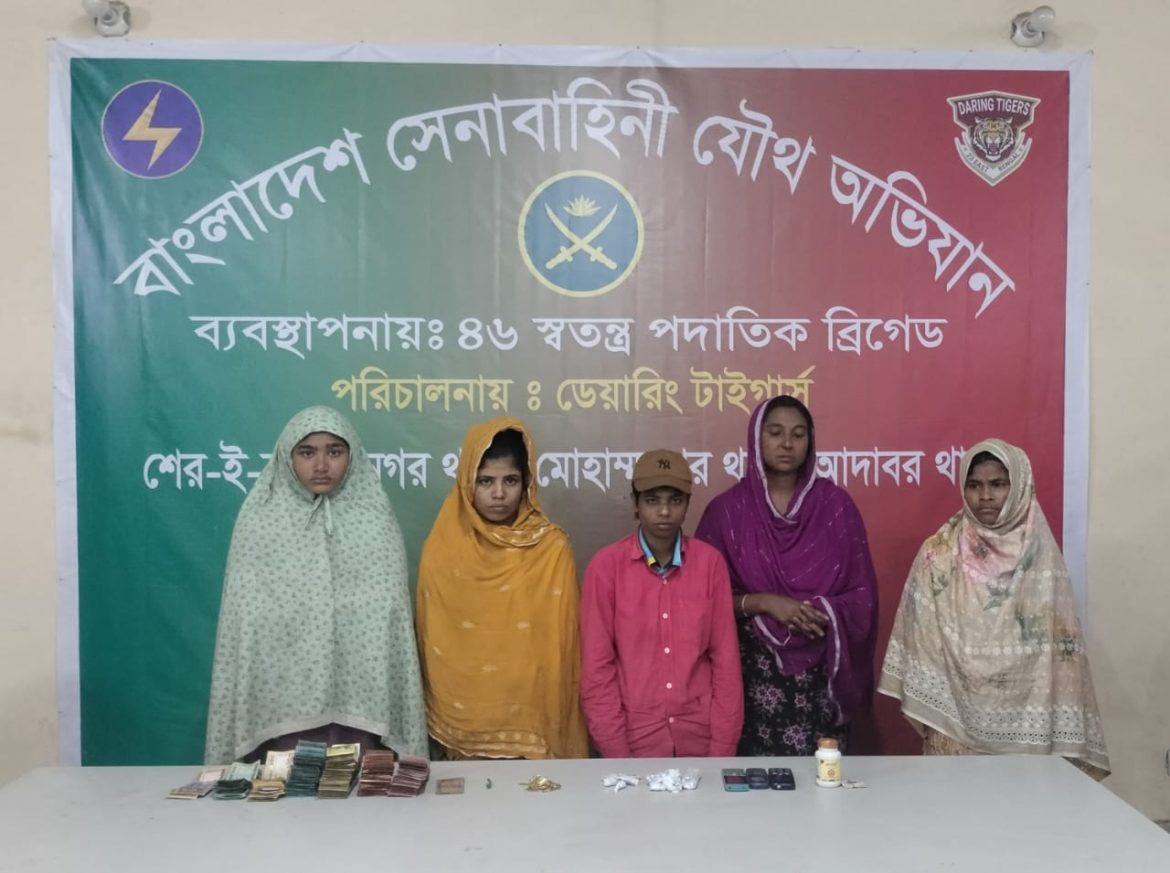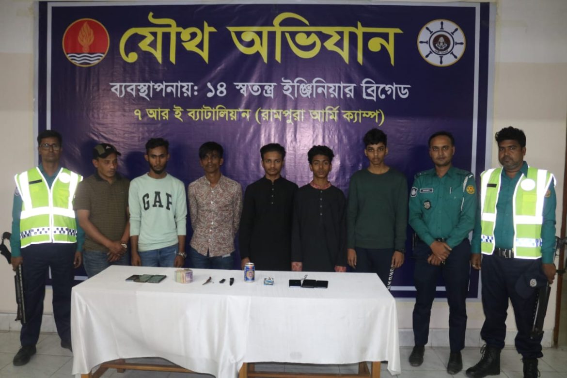 এরই ধারাবাহিকতায় সুনির্দিষ্ট গোপন সংবাদের ভিত্তিতে গত ২৫ ফেব্রুয়ারি ২০২৫ তারিখ হতে ০১ মার্চ ২০২৫ তারিখ পর্যন্ত বাংলাদেশ সেনাবাহিনীর ৬ স্বতন্ত্র এডিএ ব্রিগেড, ১৪ স্বতন্ত্র ইঞ্জিনিয়ার ব্রিগেড, ৮৬ স্বতন্ত্র সিগন্যাল ব্রিগেড ও ৪৬ স্বতন্ত্র পদাতিক ব্রিগেডের অধীনস্থ ইউনিটসমূহ, র্যাব এবং থানা পুলিশের সমন্বয়ে মিরপুর-১, মিরপুর-১০, মিরপুর-১১, কাজীপাড়া, কামরাঙ্গীরচর, গনকটুলী, চকবাজার, সোয়ারিঘাট, মোহাম্মদপুর, শেখেরটেক, আদাবর, হাতিরঝিল, রায়ের বাজার, খিলক্ষেত, কাফরুল, ভাষানটেক, ইসিবি চত্বর, উত্তরা, আবদুল্লাপুর, দক্ষিণখান ও নিকুঞ্জসহ রাজধানীর বিভিন্ন এলাকায় বেশকিছু যৌথ অভিযান পরিচালনা করা হয়। এসমস্ত যৌথ অভিযানে তালিকাভুক্ত সন্ত্রাসী ও চাঁদাবাজ, ডাকাত দলের সদস্য ছিনতাইকারী, কিশোর গ্যাং সদস্য এবং মাদক ব্যবসায়ীসহ ১২৬ জন অপরাধীকে হাতেনাতে গ্রেফতার করা হয়। তাদের নিকট হতে অবৈধ অস্ত্র, মাদকদ্রব্য, অবৈধ ঔষধ, সন্ত্রাসী কাজে ব্যবহৃত বিভিন্ন প্রকার দেশীয় অস্ত্র, পাসপোর্ট, এনআইডি, মোবাইল ফোন, সিমকার্ড, অবৈধ প্রসাধনী ও নগদ অর্থ উদ্ধার করা হয়। আটককৃতদের প্রয়োজনীয় জিজ্ঞাসাবাদ এবং আইনি কার্যক্রম সম্পন্নের জন্য সংশ্লিষ্ট এলাকার থানা পুলিশের নিকট হস্তান্তর করা হয়েছে।
