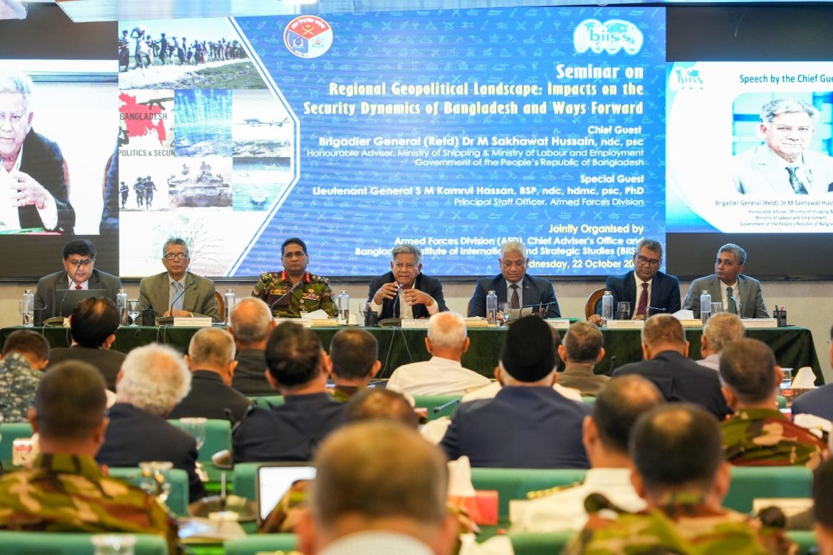 সশস্ত্র বাহিনী বিভাগ (এএফডি) ও বাংলাদেশ ইনস্টিটিউট অব ইন্টারন্যাশনাল অ্যান্ড স্ট্র্যাটেজিক স্টাডিজ (বিআইআইএসএস) এর যৌথ ব্যবস্থাপনায় ‘REGIONAL GEOPOLITICAL LANDSCAPE: IMPACTS ON THE SECURITY DYNAMICS OF BANGLADESH AND WAYS FORWARD’ শীর্ষক সেমিনার অনুষ্ঠিত