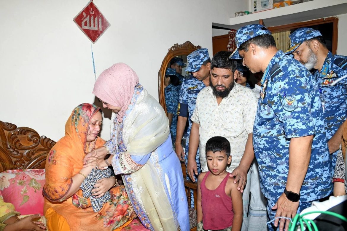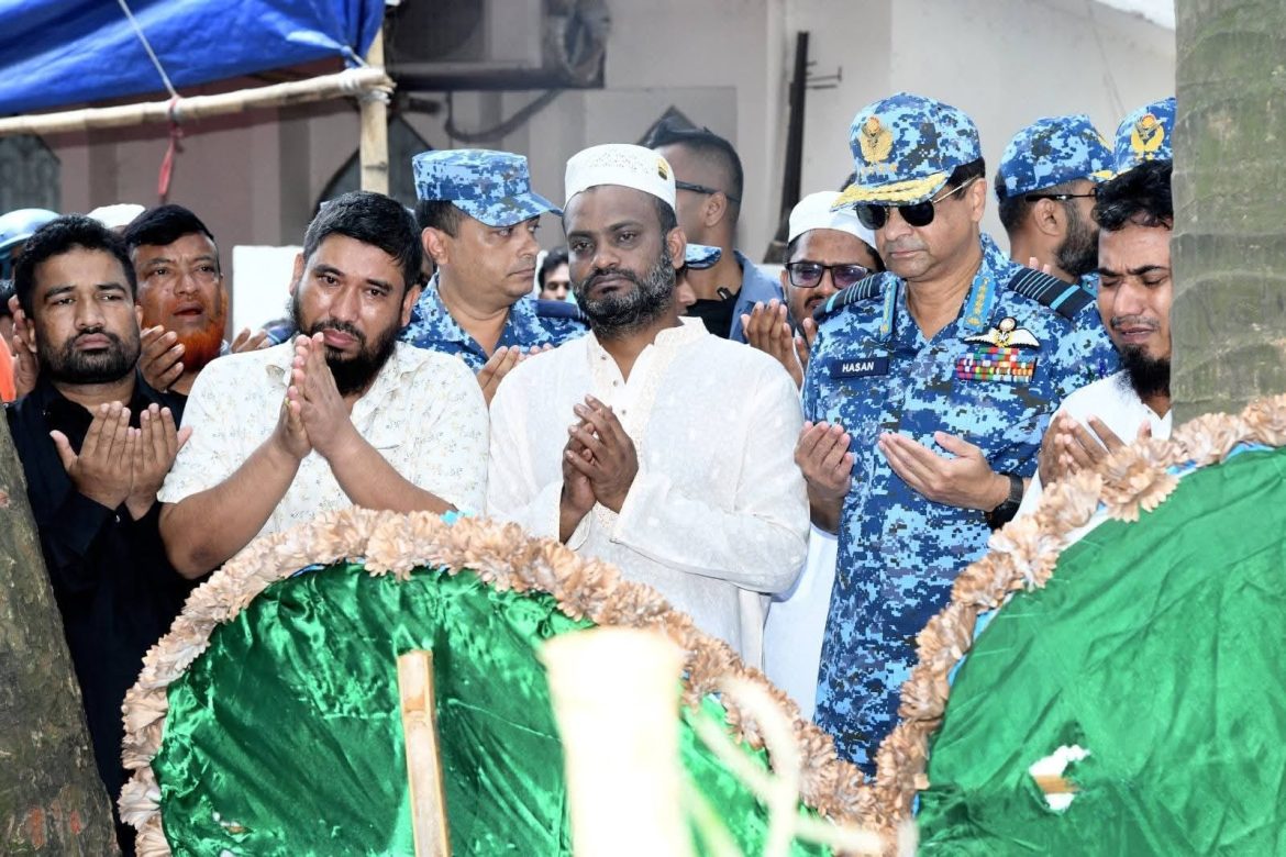 এছাড়াও, আজ শুক্রবার সম্মানিত বিমান বাহিনী প্রধান এর পক্ষ থেকে ব্রাহ্মণবাড়িয়ার আশুগঞ্জ উপজেলার সোহাগপুর গ্রামে মাইলস্টোন স্কুল অ্যান্ড কলেজের শ্রদ্ধেয় শিক্ষিকা মাসুকা বেগম এর সমাধিতে পুষ্পস্তবক অর্পণ করে তাঁর প্রতি শ্রদ্ধাজ্ঞাপন করা হয় এবং বিমান দুর্ঘটনায় নিহত বৈমানিক ফ্লাইট লেফটেন্যান্ট মোঃ তৌকির ইসলাম-এর বিদেহী আত্মার মাগফেরাত কামনায় রাজশাহীর সপুরায় কবর জিয়ারত করা হয়। এছাড়াও, একইদিনে জুম্মার নামাজের পর উত্তরার তাফালিয়া ক্রিকেট একাডেমি মাঠ প্রঙ্গনে মাইলস্টোন স্কুল অ্যান্ড কলেজের শিক্ষার্থী তাসনিম আফরোজ আয়মান (১০) এর নামাজে জানাজায় বিমান বাহিনীর একটি প্রতিনিধিদল অংশ গ্রহণ করে এবং মরহুমার কফিনে পুষ্পস্তক অর্পণ করে তাঁর প্রতি গভীর শ্রদ্ধাজ্ঞাপন করা হয়।
