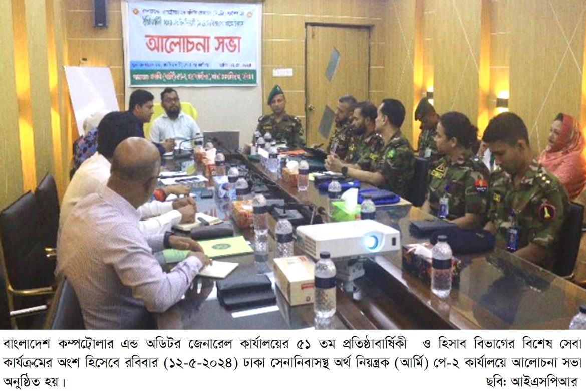 সিএজি র্কাযালয়ের ৫১ তম প্রতষ্ঠিার্বাষকিী উদযাপন উপলক্ষ্যে অর্থ নিয়ন্ত্রক (আর্মি) পে-০২ এর কার্যালয় আলোচনা সভা অনুষ্ঠিত হয়।