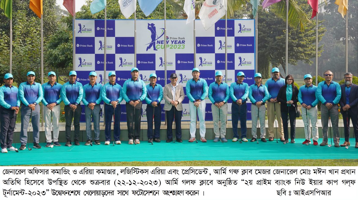 ঢাকা, ২২ ডিসেম্বর ২০২৩ (শুক্রবার) ঃ চার দিনব্যাপী ‘২য় প্রাইম ব্যাংক নিউ ইয়ার কাপ গলফ টুর্নামেন্ট-২০২৩’ এর উদ্বোধনী অনুষ্ঠান আজ শুক্রবার (২২-১২-২০২৩) আর্মি গলফ ক্লাব, ঢাকা সেনানিবাসে অনুষ্ঠিত হয়। অনুষ্ঠানে আর্মি গলফ ক্লাবের প্রেসিডেন্ট মেজর জেনারেল মোঃ মঈন খান, এনডিসি, পিএসসি প্রধান অতিথি হিসেবে উপস্থিত থেকে টুর্নামেন্টের উদ্বোধন করেন। এ টুর্নামেন্টে দেশি-বিদেশি খেলোয়াড়সহ সর্বমোট ৭৮০ জন গলফার অংশগ্রহণ করবেন বলে আশা করা যায়। উল্লেখ্য, আগামী ৩১ ডিসেম্বর ২০২৩ তারিখে এই টুর্নামেন্টের পুরস্কার বিতরণী অনুষ্ঠান আর্মি গলফ ক্লাবে অনুষ্ঠিত হবে।