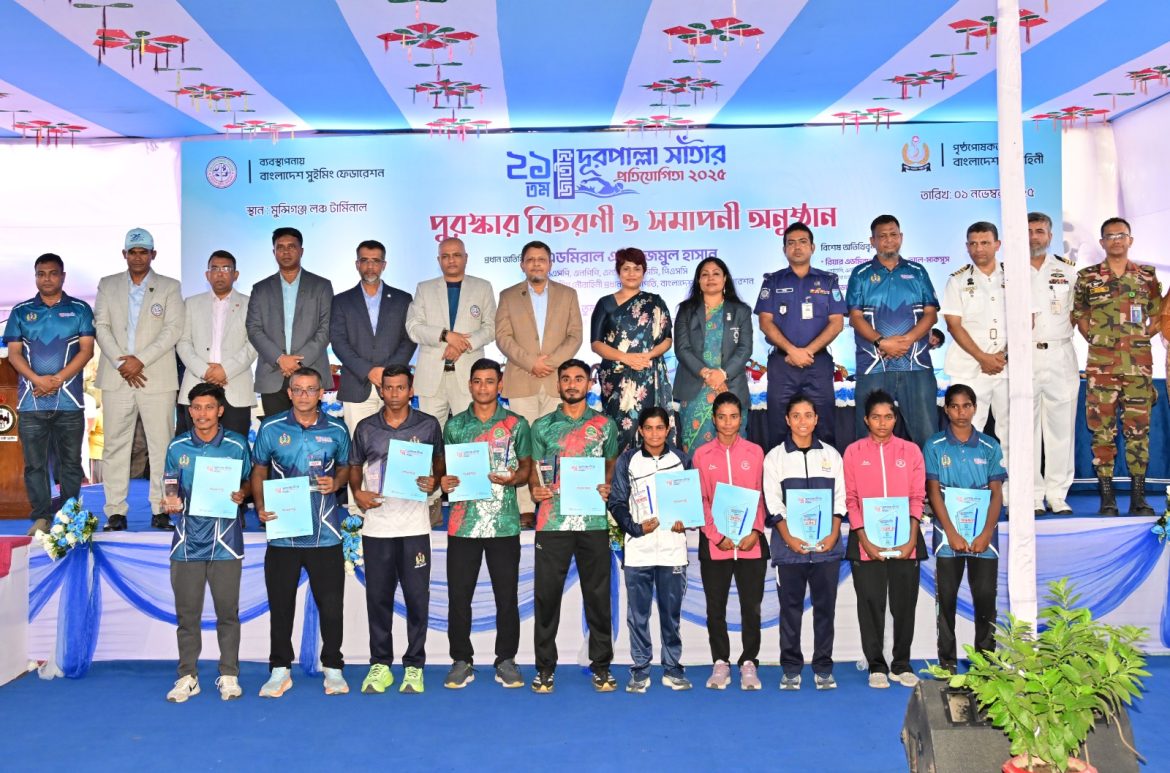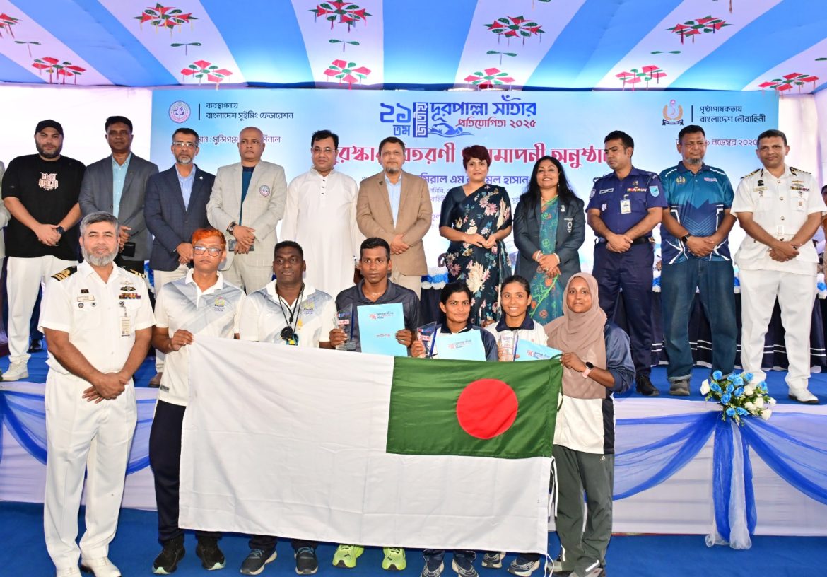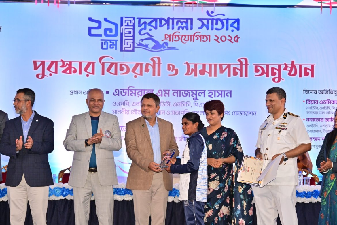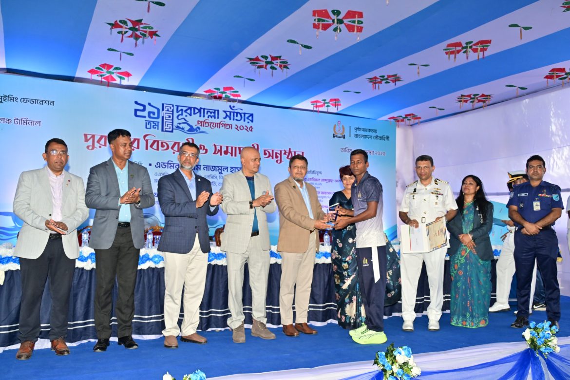 ০১ নভেম্বর ২০২৫, ধলেশ্বরী নদী, মুন্সীগঞ্জ: বাংলাদেশ সুইমিং ফেডারেশনের ব্যবস্থাপনায় এবং বাংলাদেশ নৌবাহিনীর পৃষ্ঠপোষকতায় ‘২১তম জাতীয় দূরপাল্লা সাঁতার প্রতিযোগিতা ২০২৫’ আজ শনিবার  ০১ নভেম্বর ২০২৫ মুন্সীগঞ্জ জেলার ধলেশ্বরী নদীতে অনুষ্ঠিত হয়। প্রতিযোগিতায় বাংলাদেশের বাছাইকৃত ৩৫ জন সাঁতারু অংশগ্রহণ করে, যার মধ্যে  পুরুষ বিভাগে ২৩ জন এবং মহিলা বিভাগে ১২ জন সাঁতারু রয়েছে।