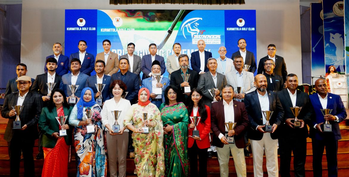 ঢাকা, ১৭ এপ্রিল ২০২৬ (শুক্রবার): চার দিনব্যাপী ‘৯ম রানার প্রেসিডেন্ট কাপ গলফ টুর্নামেন্ট-২০২৬’ এর সমাপনী ও পুরস্কার বিতরণী অনুষ্ঠান আজ (১৭ এপ্রিল ২০২৬) কুর্মিটোলা গলফ ক্লাব, ঢাকা সেনানিবাসে অনুষ্ঠিত হয়। উক্ত অনুষ্ঠানে সেনাবাহিনী প্রধান ও কুর্মিটোলা গলফ ক্লাবের প্রেসিডেন্ট জেনারেল ওয়াকার-উজ-জামান, এসবিপি, ওএসপি, এসজিপি, পিএসসি প্রধান অতিথি হিসেবে উপস্থিত থেকে বিজয়ীদের মাঝে পুরস্কার বিতরণ করেন। এছাড়াও, বিশেষ অতিথি হিসেবে নৌবাহিনী প্রধান এডমিরাল এম নাজমুল হাসান, ওএসপি, এনপিপি, এনডিসি, এনসিসি, পিএসসি এবং বিমান বাহিনী প্রধান এয়ার চিফ মার্শাল হাসান মাহমুদ খাঁন, বিবিপি, ওএসপি, জিইউপি, এনএসডব্লিউসি, পিএসসি উপস্থিত ছিলেন।