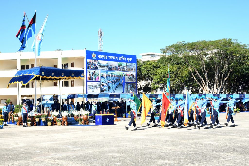 বাংলাদেশ বিমান বাহিনী প্রধান এয়ার চীফ মার্শাল হাসান মাহমুদ খাঁন, বিবিপি, ওএসপি, জিইউপি, এনএসডব্লিউসি, পিএসসি প্রধান অতিথি হিসেবে উপস্থিত থেকে মনোজ্ঞ কুচকাওয়াজ পরিদর্শন এবং আকষণীয় মার্চপাস্ট-এর অভিবাদন গ্রহণ করেন। এরপর তিনি কৃতি রিক্রুটদের মাঝে ট্রফি বিতরণ করেন। বিমান বাহিনী প্রধান তার বক্তব্যে রিক্রুটদেরকে সততা, একাগ্রতা ও নিষ্ঠার সাথে কাজ করে বিমান বাহিনীর যোগ্য বিমানসেনা হিসেবে নিজেদেরকে গড়ে তোলার আহ্বান জানান। তিনি আশা প্রকাশ করেন যে, তারা অকৃত্রিম দেশপ্রেমের প্রেরণায় উজ্জীবিত হয়ে বাংলার আকাশ মুক্ত রাখার দৃঢ় অঙ্গীকার বাস্তবায়নে সক্রিয় অবদান রাখবে।