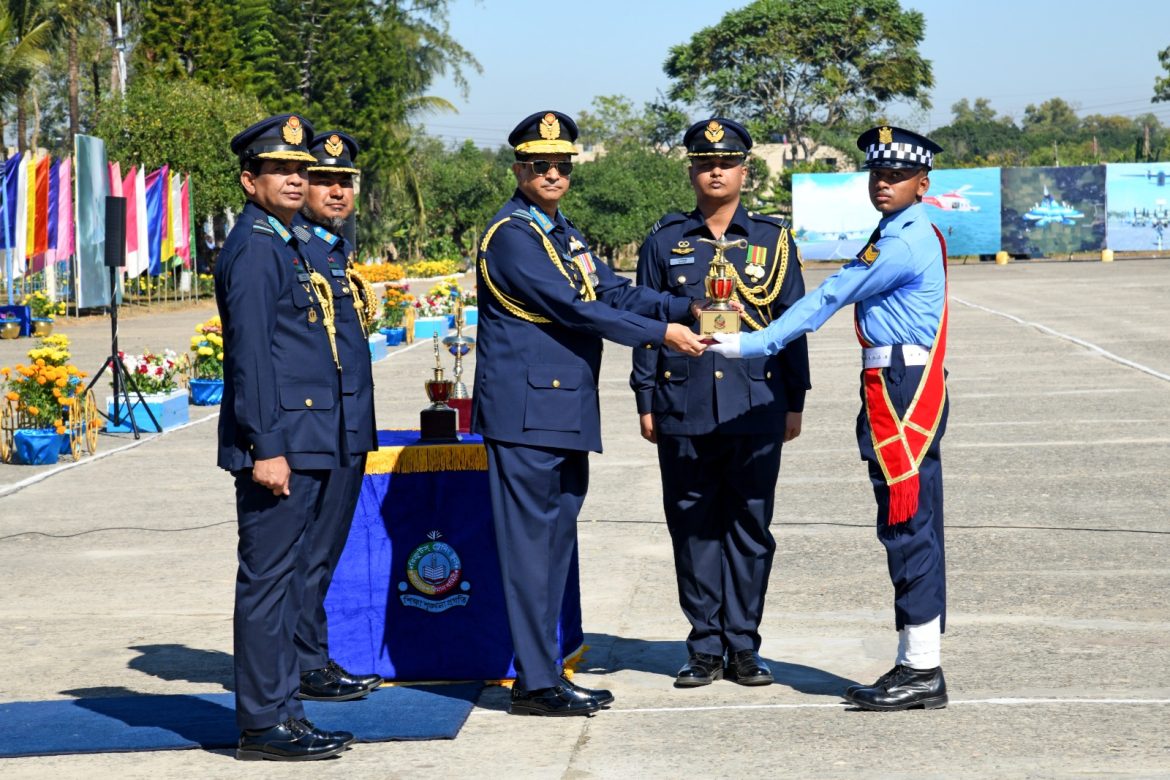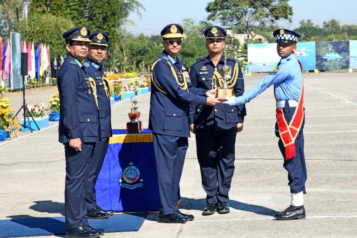 বাংলাদেশ বিমান বাহিনী প্রধান এয়ার চীফ মার্শাল হাসান মাহমুদ খাঁন, বিবিপি, ওএসপি, জিইউপি, এনএসডব্লিউসি, পিএসসি প্রধান অতিথি হিসেবে উপস্থিত থেকে মনোজ্ঞ কুচকাওয়াজ পরিদর্শন এবং আকষণীয় মার্চপাস্ট-এর অভিবাদন গ্রহণ করেন। এরপর তিনি কৃতি রিক্রুটদের মাঝে ট্রফি বিতরণ করেন। বিমান বাহিনী প্রধান তার বক্তব্যে রিক্রুটদেরকে সততা, একাগ্রতা ও নিষ্ঠার সাথে কাজ করে বিমান বাহিনীর যোগ্য বিমানসেনা হিসেবে নিজেদেরকে গড়ে তোলার আহ্বান জানান। তিনি আশা প্রকাশ করেন যে, তারা অকৃত্রিম দেশপ্রেমের প্রেরণায় উজ্জীবিত হয়ে বাংলার আকাশ মুক্ত রাখার দৃঢ় অঙ্গীকার বাস্তবায়নে সক্রিয় অবদান রাখবে।