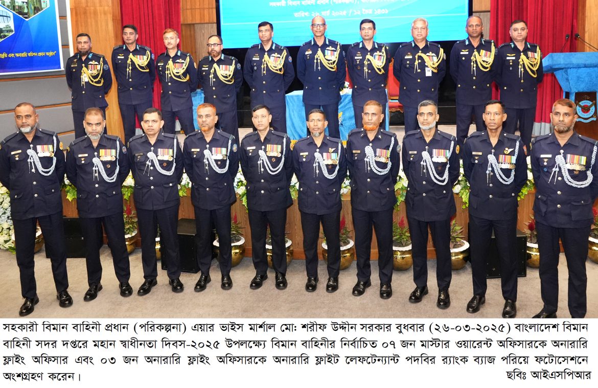Principal Staff Officers of Bangladesh Air Force, Air Officer Commanding of Bases/Unit, Air Officers, Directors of Air Headquarters, Senior Officers and invited guests from various Bases were present on the occasion. This Honorary Commission of BAF will be implemented with effect from 26 March 2025.